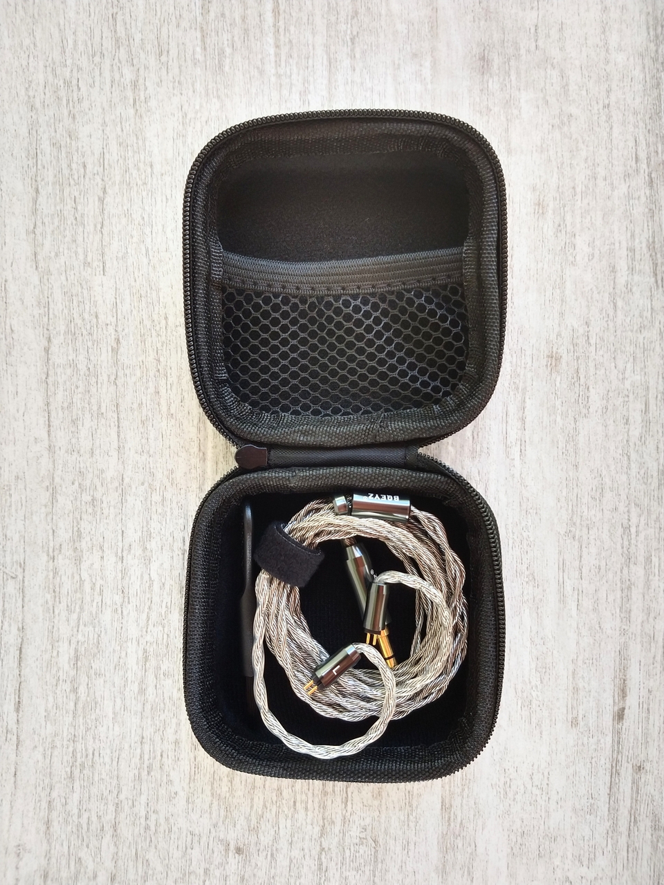 Cabo. Esse cabo é realmente uma obra de arte, muito bonito. Provavelmente o cabo mais bonito que já tive a oportunidade de ver em mãos. É um brilho prateado meio que em estilo metálico, diferente dos cabos de prata que tem uma coloração quase branca. Lembrou o cabo do Letshuoer S12, só que o do Autumn é mais discreto no geral, então acabei achando ele mais interessante. Além da beleza, o cabo também é muito bom, bem leve, não embaraça, não pega memória, é bem maleável, bom de guardar no Case. Em questão de microfonia, foi quase nada, passa despercebido. Num contexto geral, esse cabo é um ponto muito positivo no produto. PS: vi que a empresa vende ele separadamente também na loja.