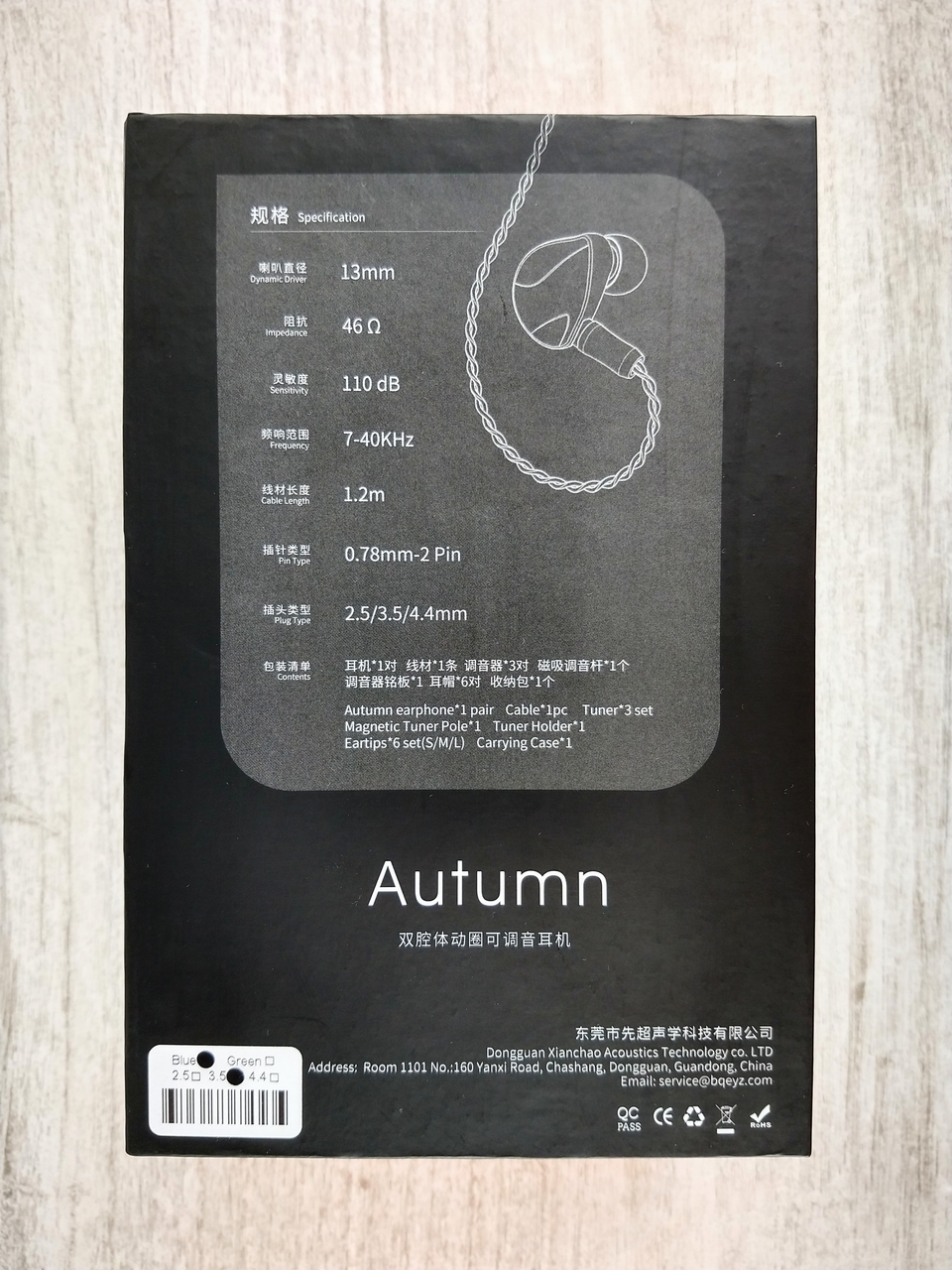 O AUTUMN está sendo comercializado pelo valor de $199 dólares (USD) na loja oficial da BQEYZ no AliExpress. Ressaltar que no momento que escrevo essa review, o fone está com um preço menor do que o oficial de lançamento. O fone foi produzido em duas cores: Benzo Blue, e Ash Green. Ele também possui a opção de escolha dos plugues: 2.5mm, 3.5mm, e 4.4mm (é preciso escolher apenas uma opção no ato da compra).