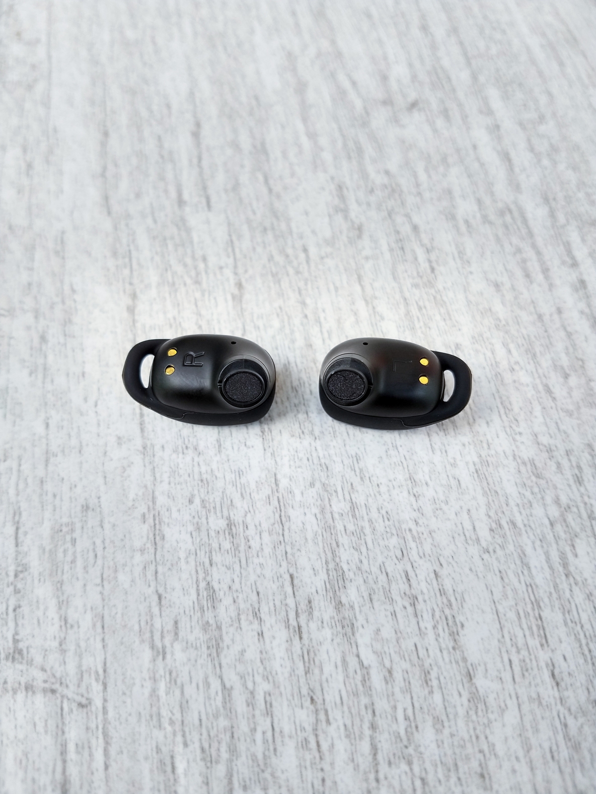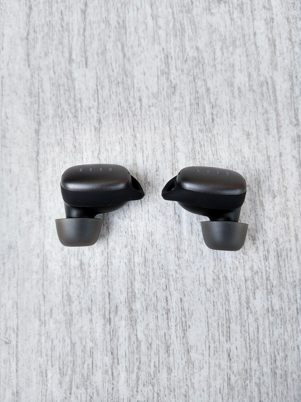 Encaixe. O encaixe do T2 PRO foi bem tranquilo, só precisei fazer o teste do arco pra ver qual o melhor tamanho e depois dar uma leve giradinha pra frente, pra entrar certo na cartilagem da minha orelha. Caso alguém não goste de usar o arco, é só usar a borrachinha que não tem o arco (ver na foto). Esse fone tem um design bem minimalista e não fica com parte protusa pra fora do ouvido, achei ele bem discreto, eu tenho preferência por designs assim. A inserção do fone no ouvido eu achei média, e é a ponteira (eartip) que ajuda a conferir esse nível de inserção. O isolamento achei de médio pra bom, agora, se a pessoa precisa muito desse quesito, acredito que terá que fazer algumas modificações pra aumentar o isolamento, como trocar as eartips, ou até mesmo deixar o ANC ligado o tempo todo (é uma alternativa).