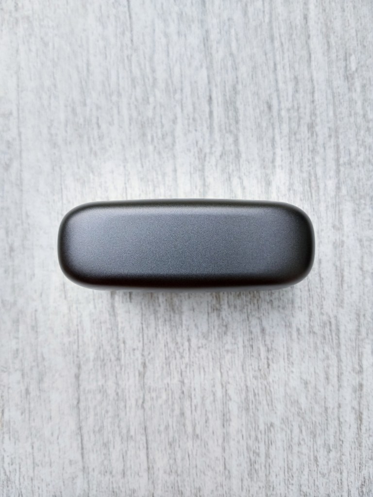 A tampa consegue ficar “em pé” ao abrir, o que é bom pra ela não ficar voltando nos dedos na hora de retirar os fones do Case. É possível abrir a tampa do Case com apenas uma das mãos, mas não é algo tão simples, precisa de um pouco de “técnica”. A tampa tem aquele som chato ao fechar, tipo “clack”, só que pelo menos vejo que não é algo tão irritante, dá pra viver com, porque tem Cases que fazem um estalo bem incômodo. O Case possui apenas um único LED na parte da frente, na cor branca.