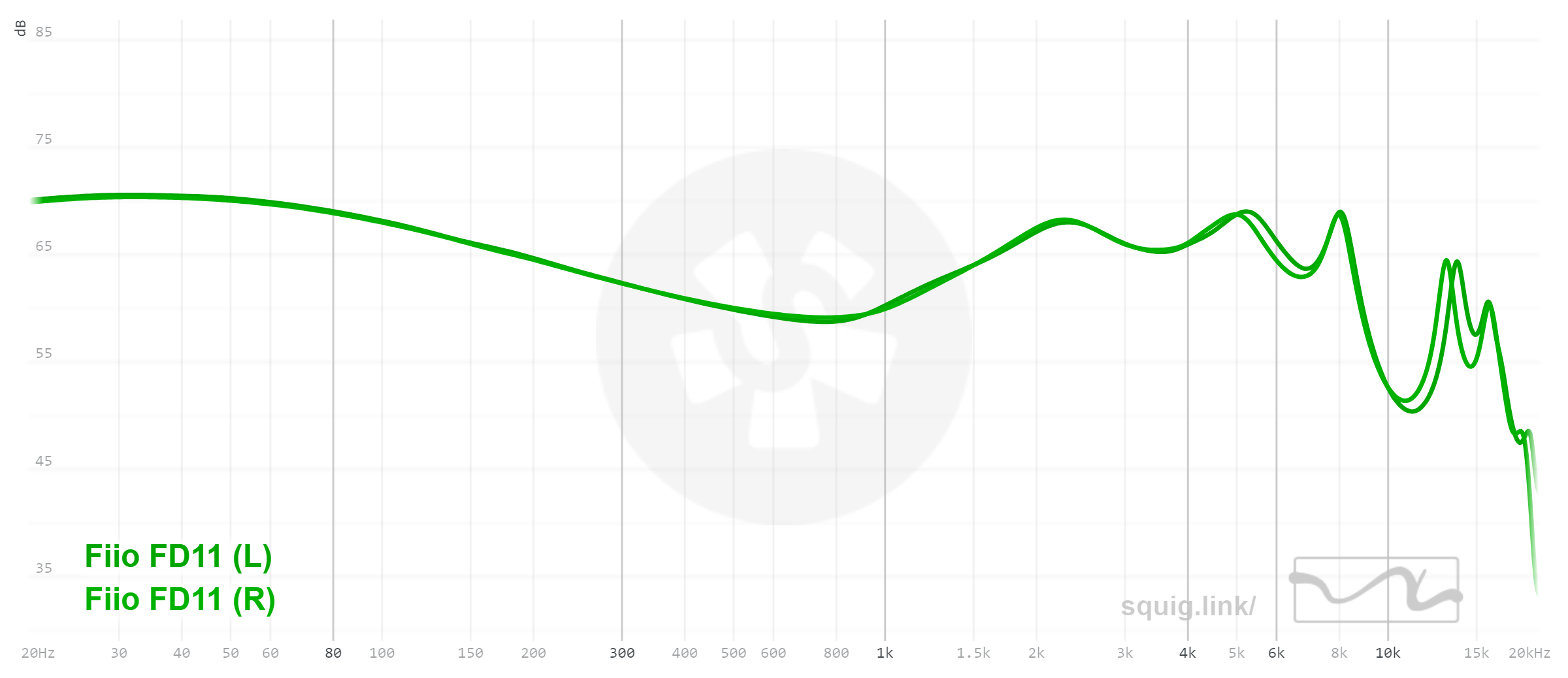 In qualitative terms, the FD11’s treble are well “balanced”, pleasant, controlled, “linear”, have good definition, without peaks, without coloration. The treble have a very coherent sparkle with reality, the sound is well “balanced”, without a feeling of artificial sound. They have good detail (although not at the micro-detail level), and good airy. They are not strident treble, not sharp, not harsh, not fatiguing, and also didn’t present sibilance in any situation. Everything I heard didn’t present anything out of context, Hi-Hats always played with good definition and without sounding harsh, cymbals didn’t sound artificial, the fingerpicking on a mandolin presented itself with a very coherent timbre.