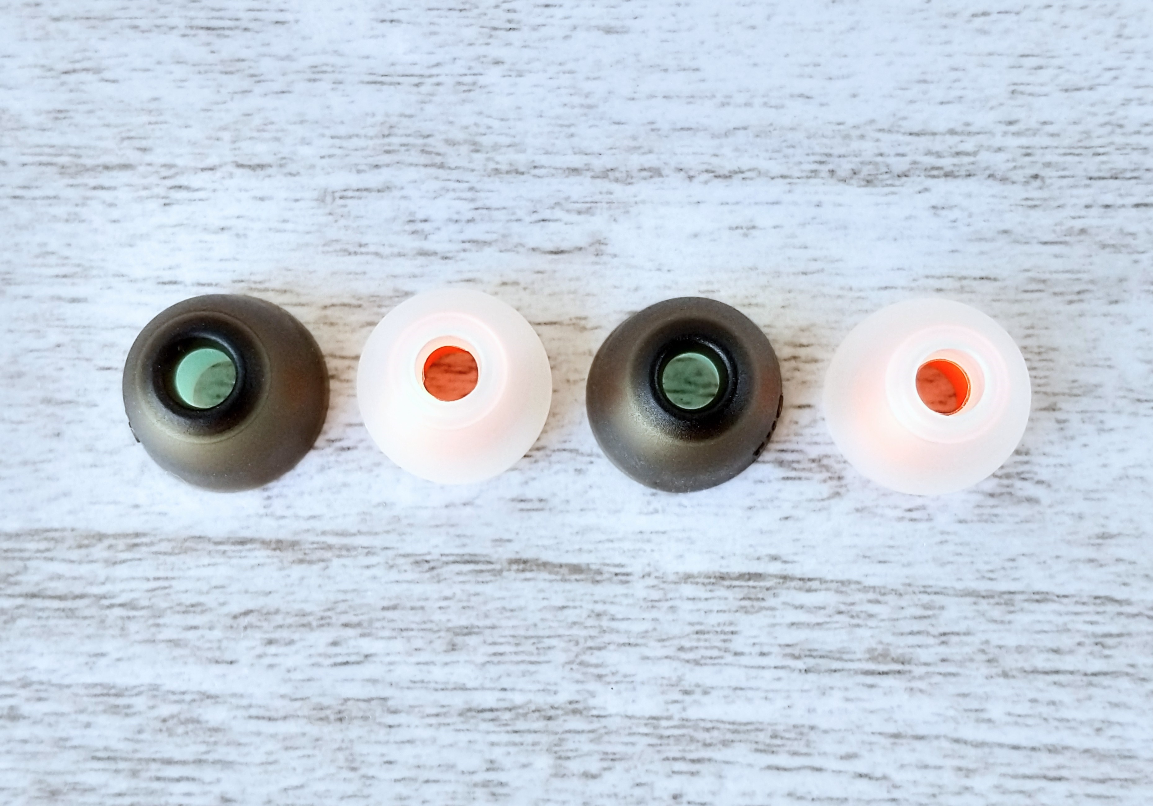 A ponteira tem a logo da FiiO em alto-relevo do lado externo (lado que fica em contato com a pele), mas nos testes aqui isso é algo imperceptível e não afeta no uso, nem traz desconforto.