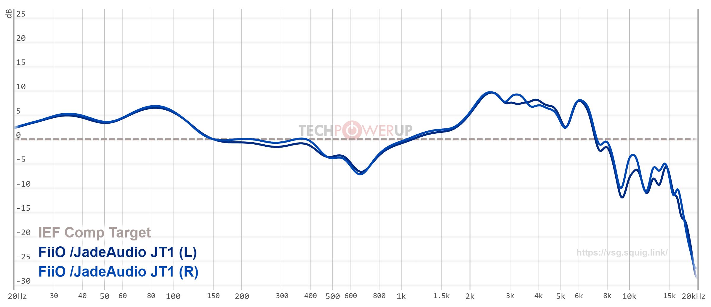 Qualitativo: São graves fortes, massudos, tem peso, tem chão, preenchem a apresentação. São graves que deixam a sonoridade mais quente, mais “aconchegante”, mais macia. Felizmente são graves que não invadem os médios, mas eles tomam bastante espaço num contexto geral. Eles tem boa definição, mas não são a última gota em detalhamento, em algumas circunstâncias passam a sensação de que poderiam ter mais resolução e velocidade. Tem textura e fisicalidade. O impacto é forte e tem uma característica mais expansiva, ou seja, são graves mais cheios, mais soltos, ao invés de serem graves delineados e apertados. Aqui é inevitável não citar o Hifiman HE400SE, que tem graves mais limpos e detalhados, porém não tem a mesma atividade na região dos sub-graves que o JT1 possui. Então, o JT1 acaba tendo graves que buscam a diversão, a descontração, para músicas que você não vai ficar analisando detalhe por detalhe.