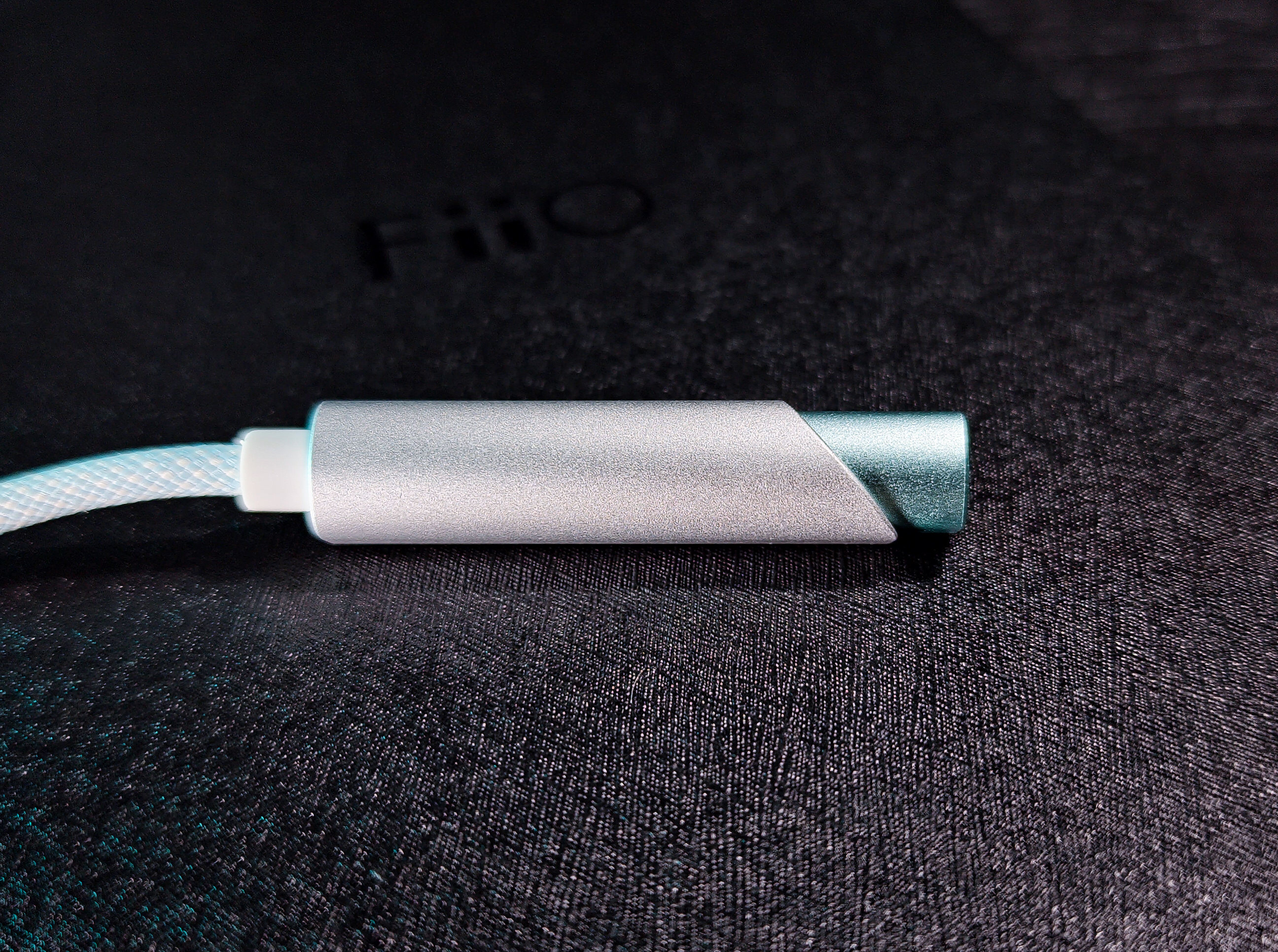 The dongle features an RGB LED right next to the “FiiO” name. The LED colors represent the sampling rates: Blue – PCM below 48kHz; Yellow – PCM above 48kHz; Green – DSD. The device supports PCM 32-bit/384kHz and DSD256. I use FLAC files at 16-bit/44.1/48kHz and common music streaming services like Spotify and YouTube.