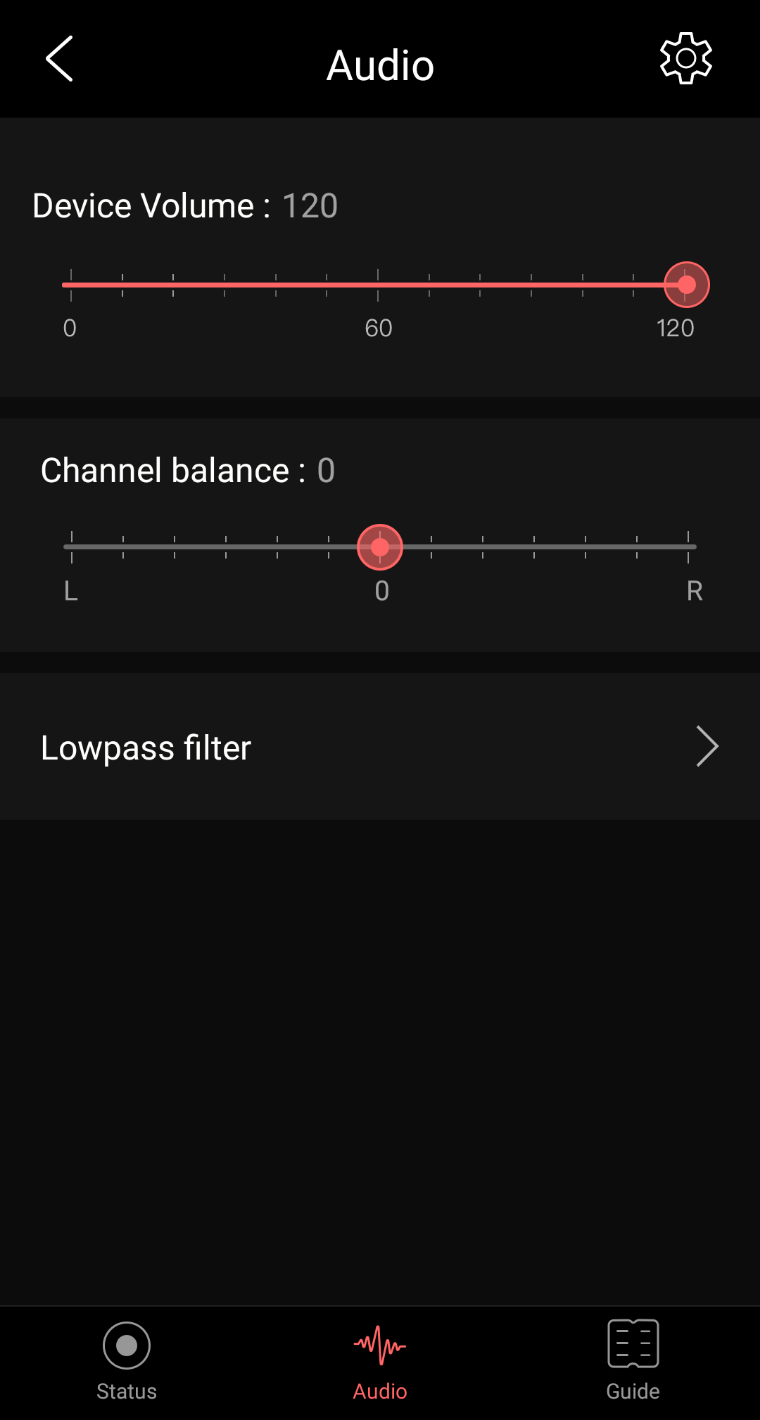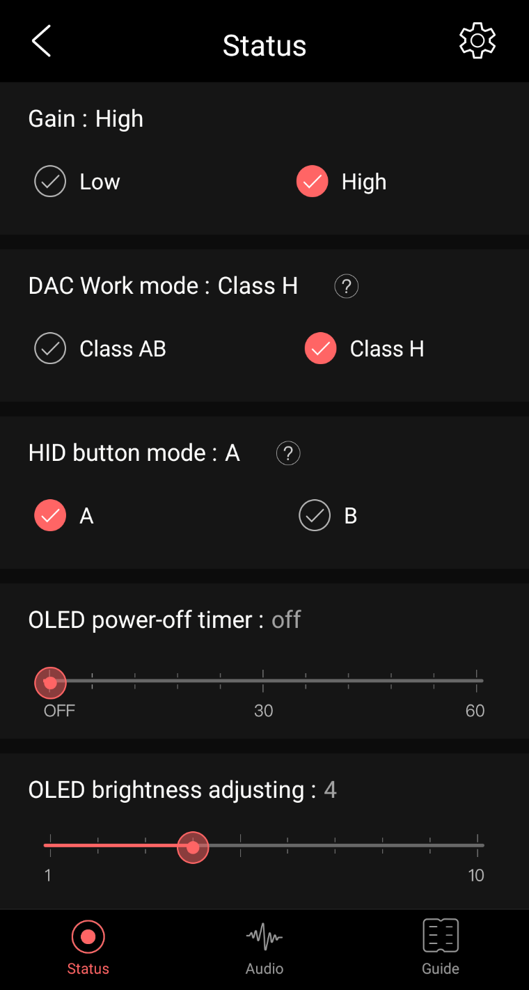 FiiO Control App. A FiiO disponibiliza um aplicativo para Android e iOS, por ele é possível controlar alguns dos recursos que tem disponível no dongle. Vou aproveitar as imagens do aplicativo para detalhar os recursos disponíveis no KA5.