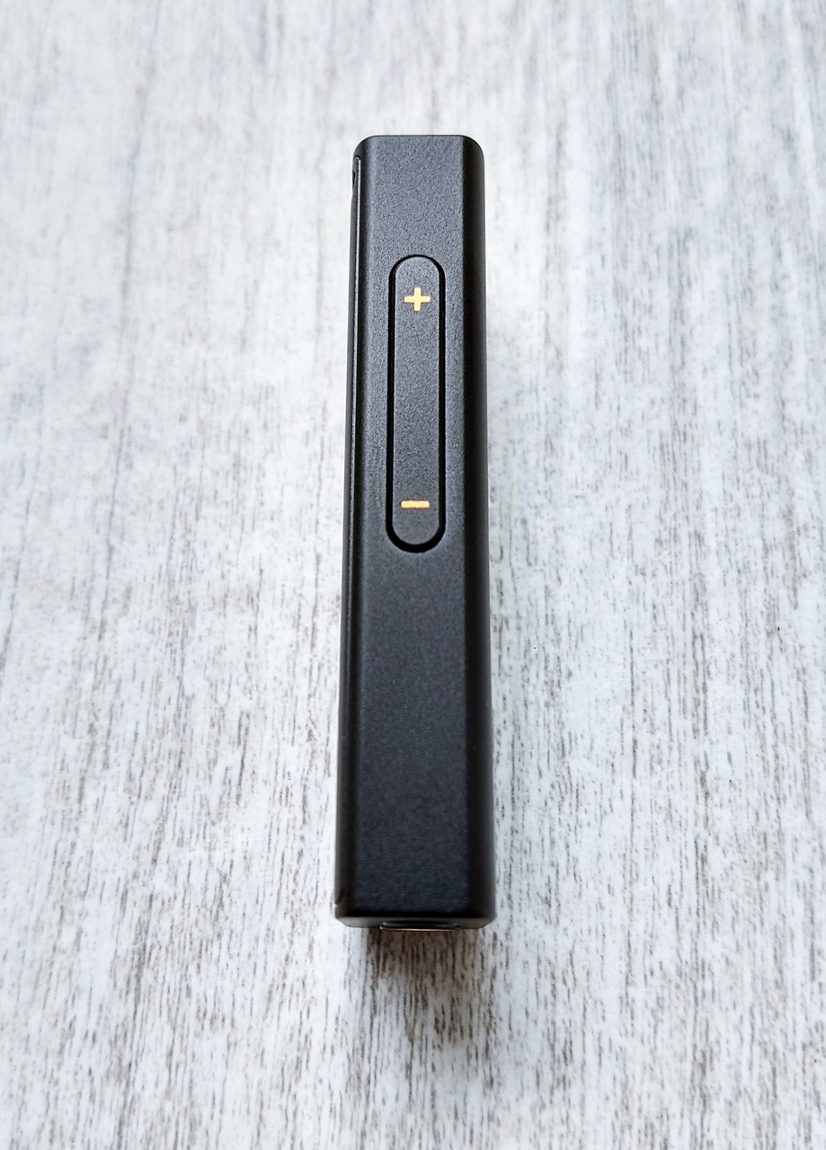 O FC4 conta apenas com um controle de volume da lateral direita, e só, não possui mais nenhum outro recurso por meio físico. O botão de volume eu achei ser uma peça sólida, estável, não fica fazendo aquele barulhinho de folga se você balançar o produto. Aquele ruído não é algo que seja um problema, mas é sempre bom quando o produto não possui, não é verdade? Então, eu achei esse detalhe um ponto positivo na construção do dongle. Eu tô testando o produto zerado (novo), não sei se com mais tempo de uso se o botão virá a apresentar o tal ruído.