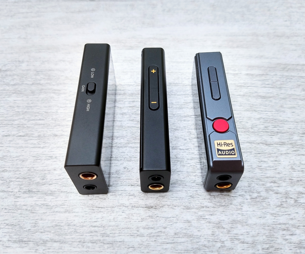 Som: Pra começar, eu não curti muito fazer um comparativo com 3 produtos ao mesmo tempo, acho que acabou confundindo muito a mente, teve momentos que eu acreditei estar ouvindo uma diferença, e logo em seguida a diferença que eu tinha notado já tinha desaparecido. Penso que essa vai ser a última vez que vou fazer esse tipo de comparativo, a diferença às vezes é tão pequena ou inexistente (pros meus ouvidos). Pode ser que exista mais diferença entre produtos como um DAC/AMP de mesa e um dongle simples (3.5mm), mas a minha experiência com esses 3 dongles, a sonoridade foi muito parecida. O que eu posso afirmar é que todos 3 são produtos de altíssimo nível e possuem qualidade muito satisfatória. Entregam um excelente desempenho em detalhamento, transparência, e resolução.