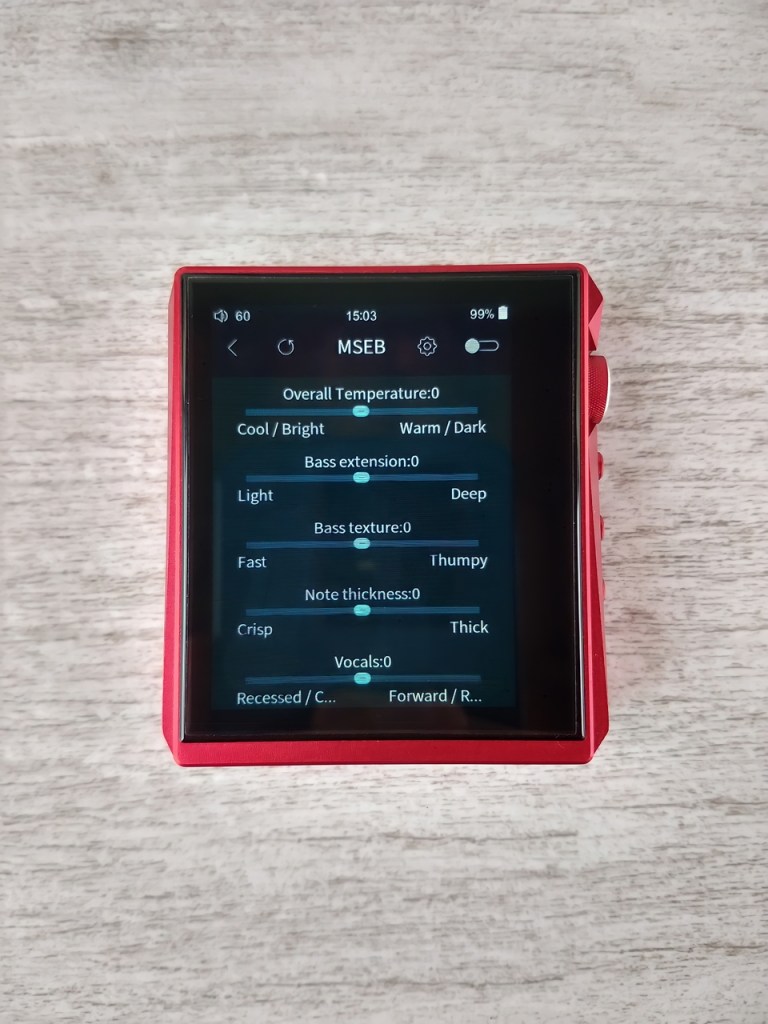 Amplificação na saída Balanceada. Já na saída 2.5mm eu testei com o Tin HiFi P1. Primeiro eu testei o fone na saída 3.5mm, e depois eu troquei pra 2.5mm, na verdade eu tive que fazer isso algumas vezes e foi bem chato porque eu tive que ficar tirando e plugando conector MMCX. Então assim, na minha primeira audição, eu não senti muita diferença não, talvez eu estivesse com uma expectativa grande ou não estava muito concentrado. Mais algumas tentativas e realmente percebi um ganho na amplificação do sinal. Entretanto, para esse fone em específico eu achei que ficou bom, mas não me satisfez por completo. Isso tudo no modo ‘Low Gain’ com 90% do volume.