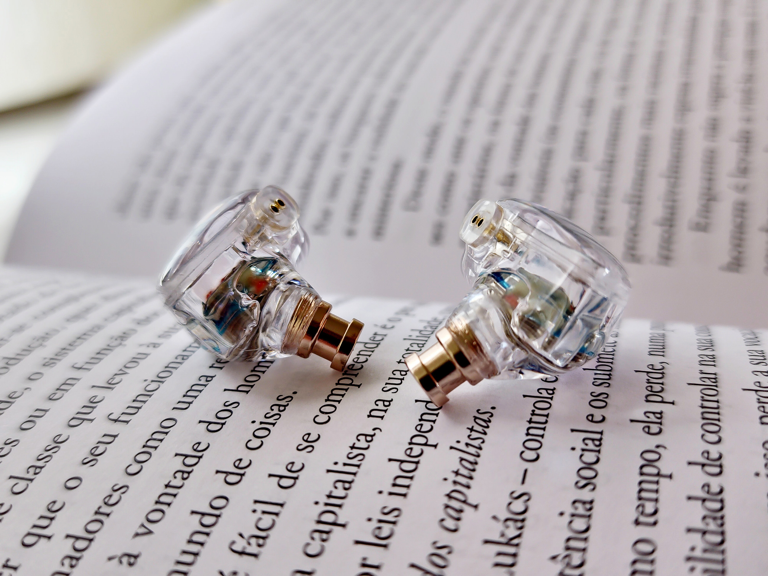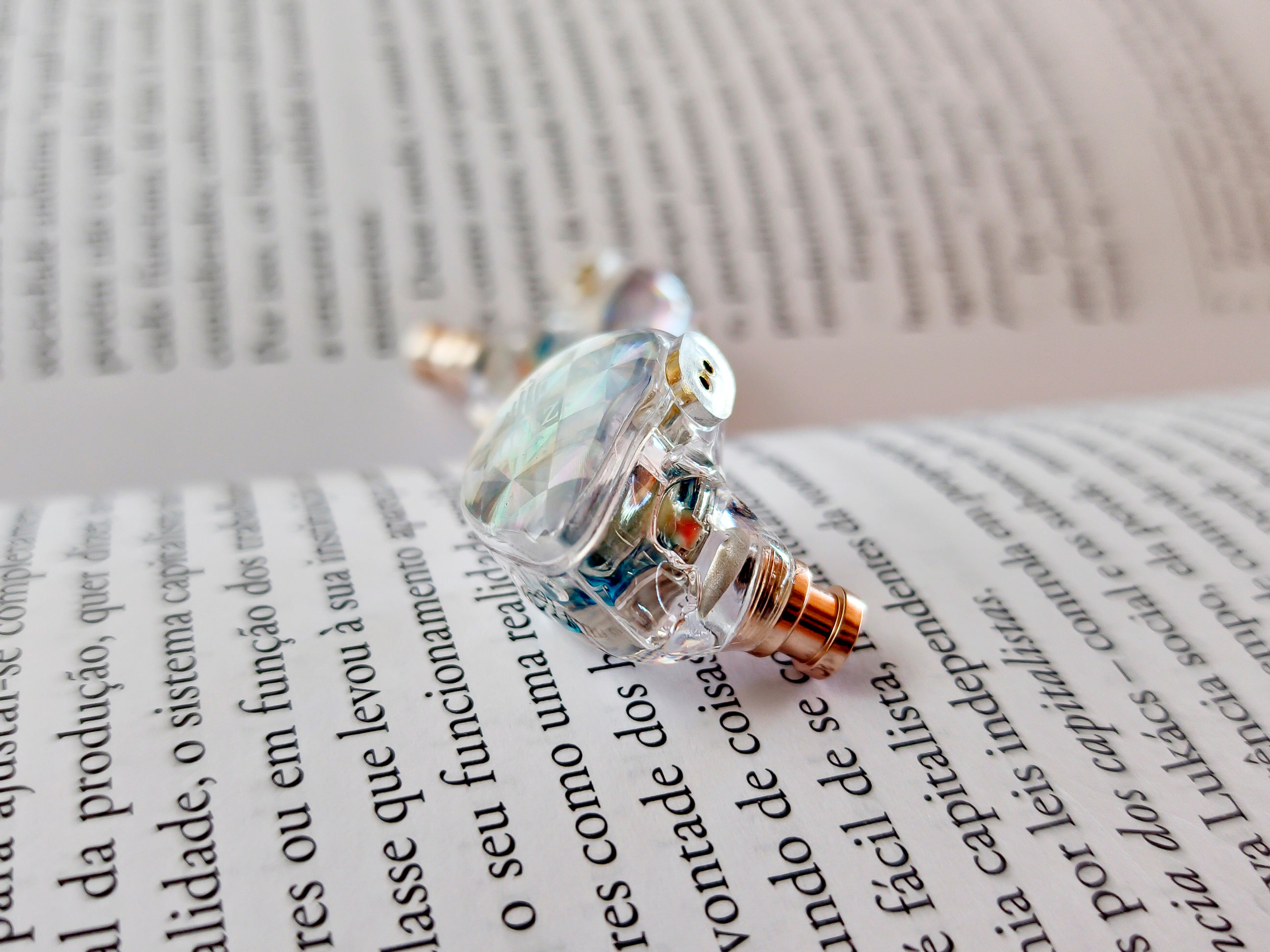 Construction: The MS1 Galaxy is made of plastic. I generally consider an IEM to be made of plastic when it comes in two separate parts – the shell and the faceplate – and these two parts are joined either by a snap-fit or glue, as is the case with the MS1. Being plastic, the earphone is quite lightweight, which is great for comfort, but on the other hand, it requires more care because its durability may not be as good as that of a metal or even a more elaborate resin earphone. An interesting detail is that this transparent version of the MS1 allows you to see everything inside the earphone (I think I made that quite visible in the unboxing video).