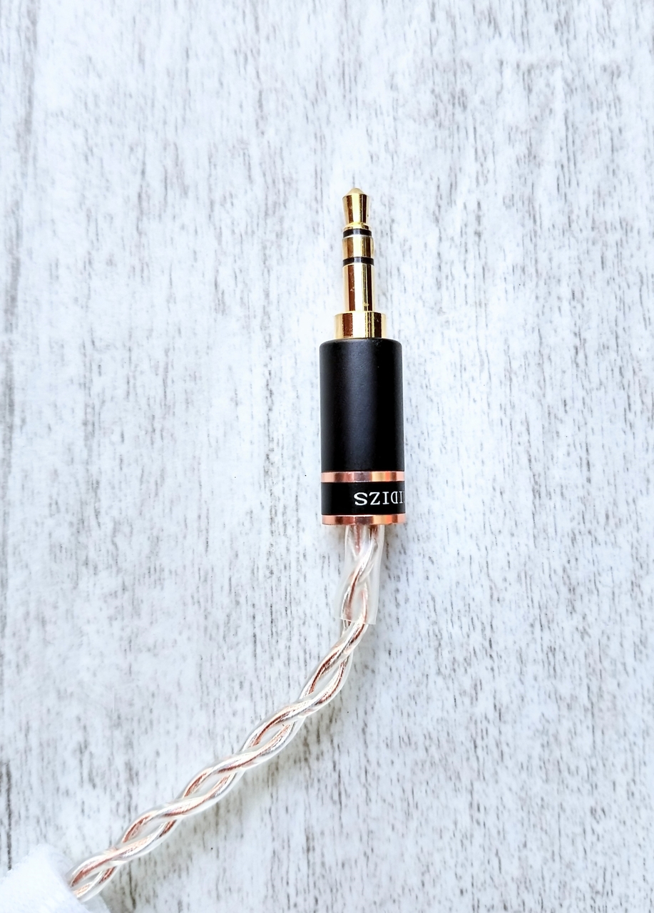 Cabo. Esse cabo é de ótima qualidade. É fino, leve, e bonito. A questão da beleza é algo subjetivo, eu confesso que curto detalhes mais sóbrios, mas é inegável que ele apresenta requinte. Além da estética, também é um cabo muito prático, fácil de enrolar para guardar no estojo. É um cabo que não embaraça, não pega memória, e a microfonia é muito pouca (apenas o trivial de todos os cabos). O material que reveste o cabo é um PVC de textura bem lisa, agradável ao toque e ao manuseio. Realmente gostei desse cabo por não ter pontos negativos, não tem nada que eu tenha a criticar… Talvez só a cor dos detalhes, que é em dourado rosê, e aí pro meu gosto eu prefiro algo mais escuro ou até prateado. Mas isso não influencia na usabilidade do objeto, que pra essa faixa de preço, bate cabos de preços mais elevados.
