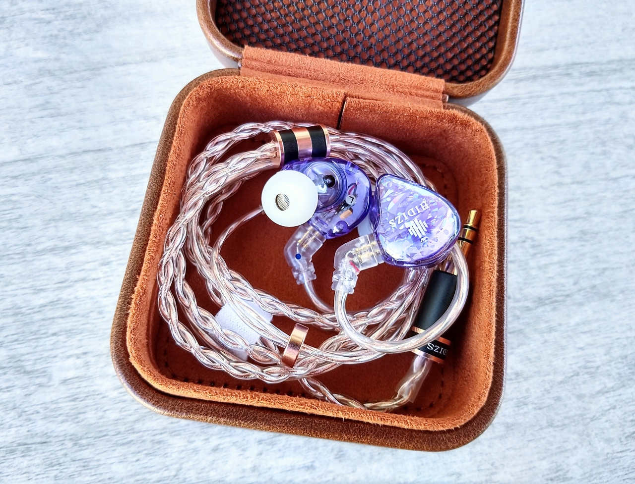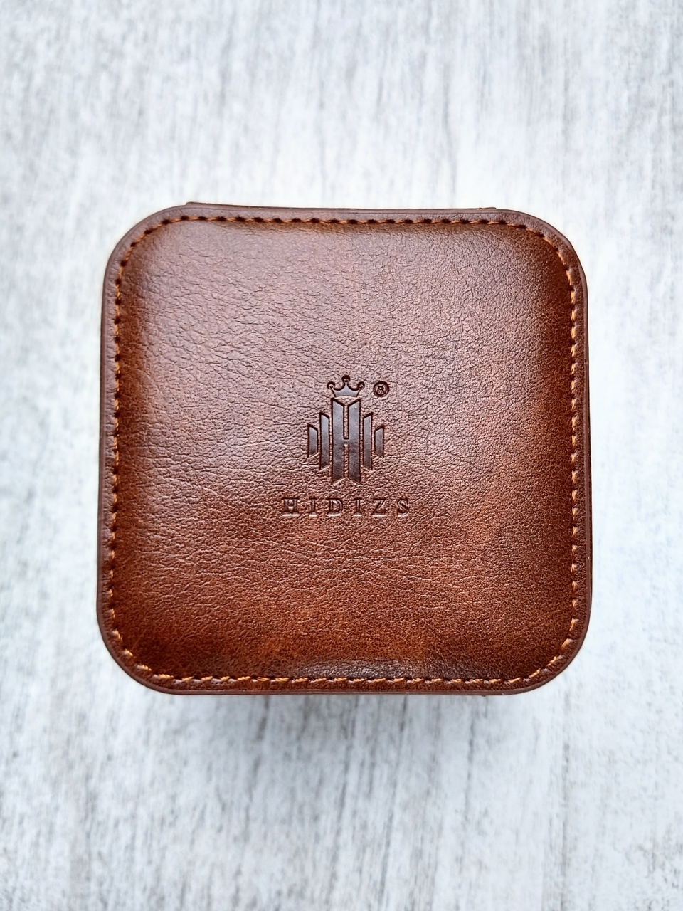 O fone vem com um case (estojo) rígido revestido com couro sintético e possui fechamento magnético. Entra na lista dos melhores cases que já testei junto com os cases do BGVP Melody e do Whizzer HE03D. Nessa faixa de preço do MS2, eu acredito não ter outro fone com a qualidade que tem este case aqui. Só o case custa cerca de R$ 130 reais, é vendido separadamente na loja da empresa: Hidizs EA01.