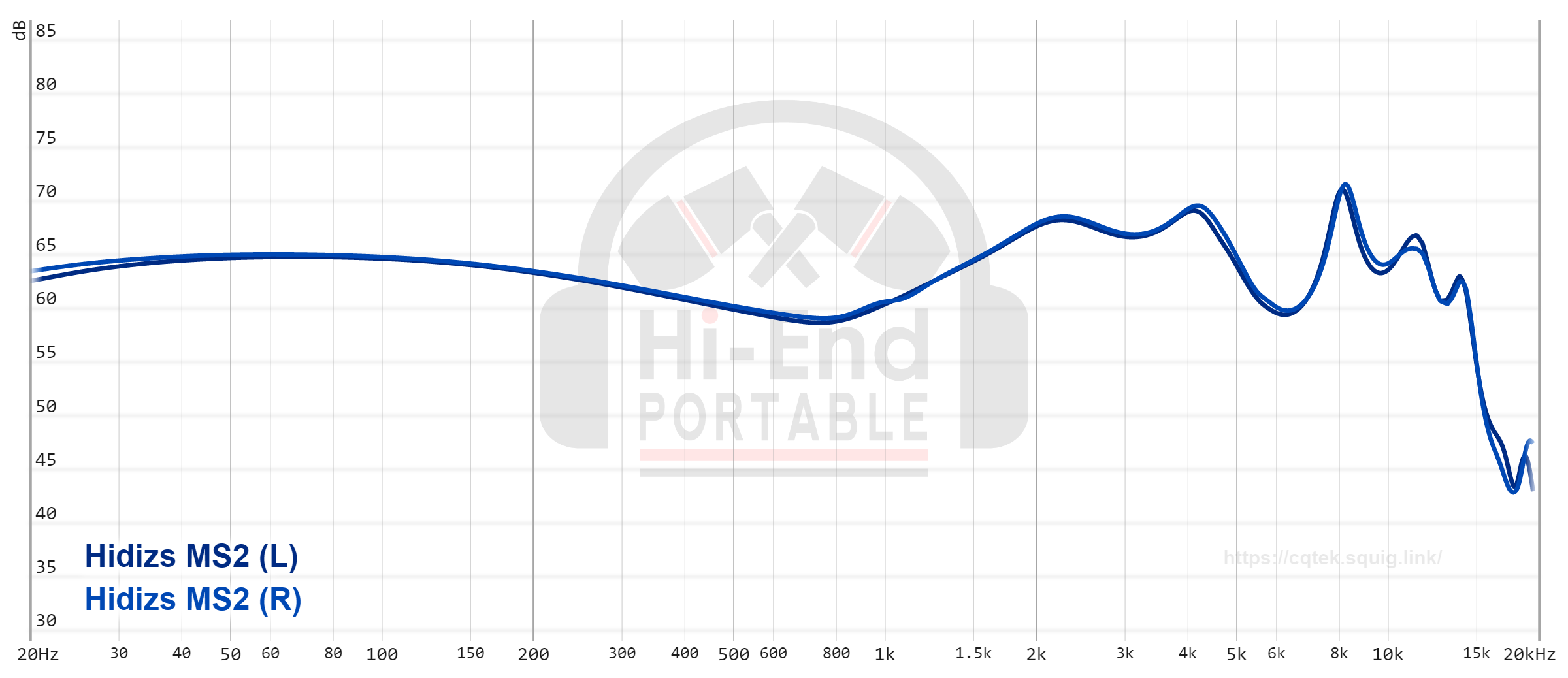Os agudos do MS2 em termos quantitativos. Aqui é que eu acho que a medida passeia entre o moderado e o alto. Isso porque de fato não é uma região alta como um todo, mas em alguns momentos e com alguns instrumentos, é possível encontrar uns pequenos destaques. Eu acho que o que pode ter acontecido aqui foi que a empresa optou por colocar a armadura balanceada (BA) mais próximo do bocal do fone (eu acredito que seja isso). Mesmo assim, essa questão da BA não traz detrimento pra essa região dos agudos, vai depender também de como veio o instrumento na gravação, a maioria das coisas que eu ouvi passou tranquilo, apenas um carrilhão ou um prato de condução que mostrou ter uma coloração além do que eu julgo o coerente. Na minha opinião, acho que a empresa poderia ter realocado essa BA pra outro lugar ou ter diminuído esse pico no tuning… não que o que eu escutei aqui seja ruim, mas pro meu gosto eu teria baixado um tiquinho a mais pra ficar perfeito.