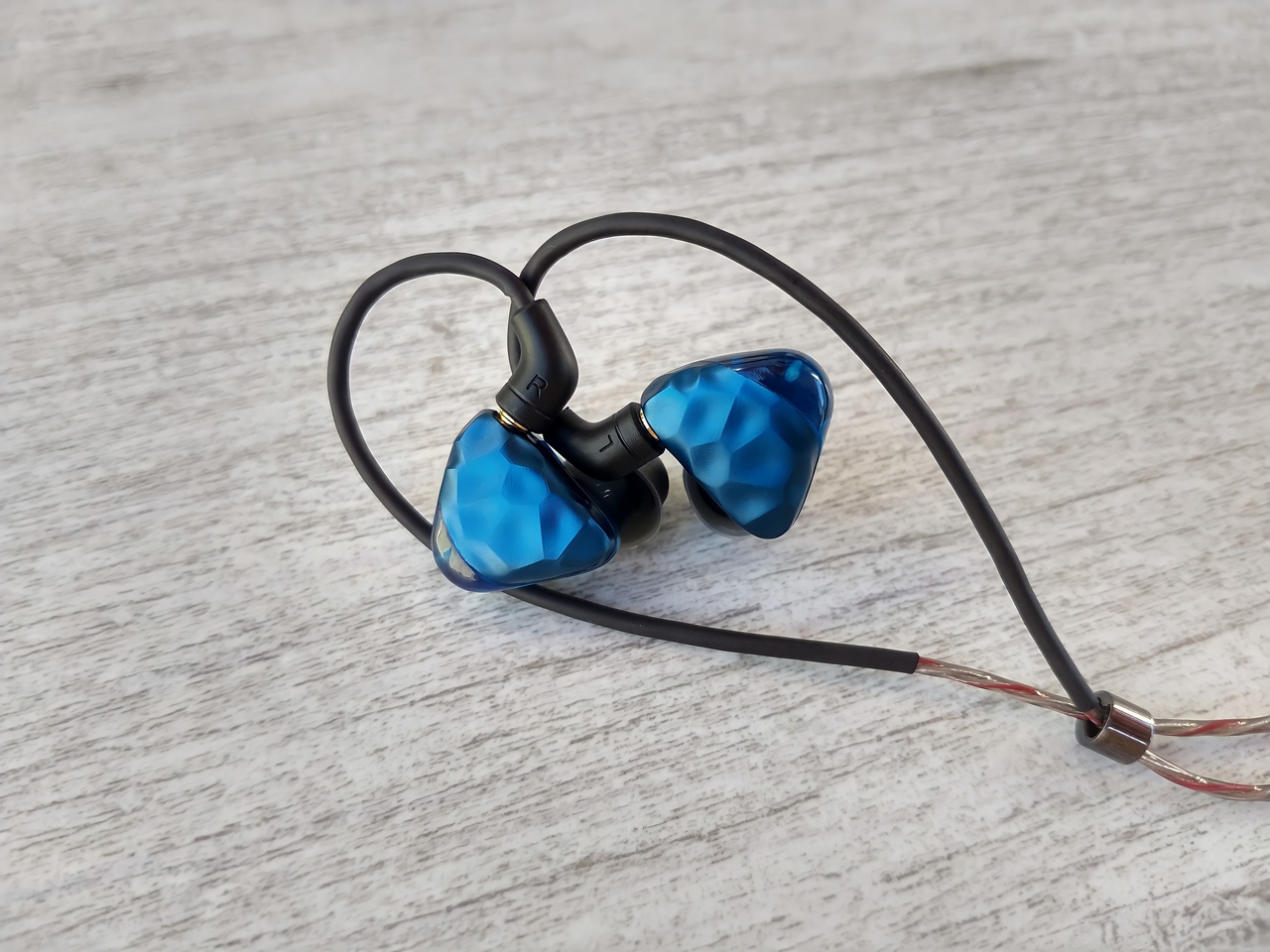 Conectores MMCX. Aqui nós temos um ponto que não foi tão positivo, porque os conectores rotacionam um pouco. Na verdade não são os conectores, e sim a conexão entre o cabo e o fone que fica passível de giro. No caso específico desse fone, eu não achei algo tão gritante, mas eu tenho preferência que eles não se mexam.