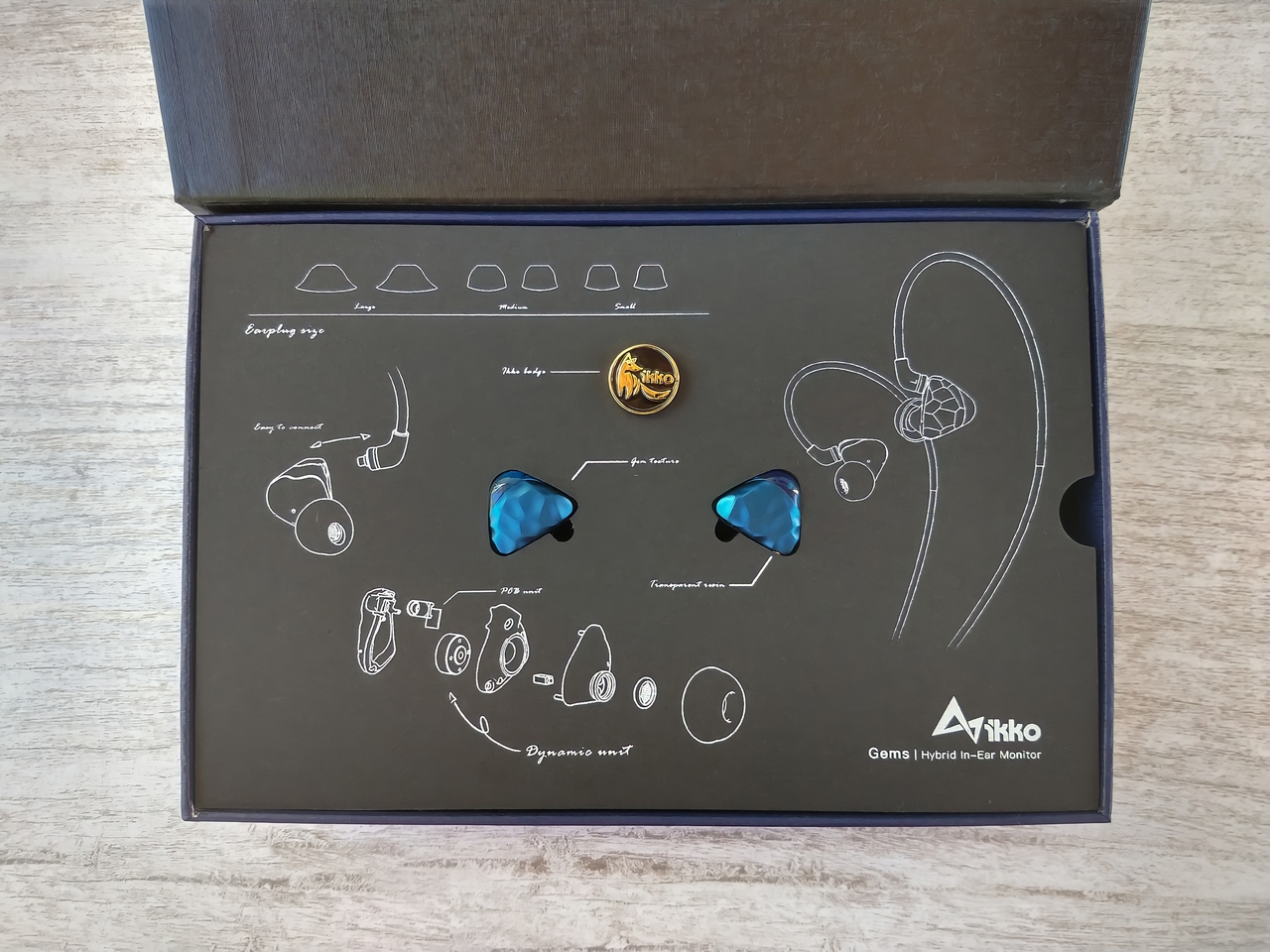 Eartips (ponteiras/borrachinhas). Dois tipos: Silicone e Foam (espuma). As de silicone vieram 7 pares nos tamanhos PP/P/M/G/GG/XGG. E as de espuma vieram 3 pares nos tamanhos P/M/G. As de espuma são comercializadas pela própria IKKO, chamam-se “I-Planet Foam Eartips“, e são vendidas também separadamente pela empresa, caso alguém se interesse (Hiperlink em nova aba clicando no nome).