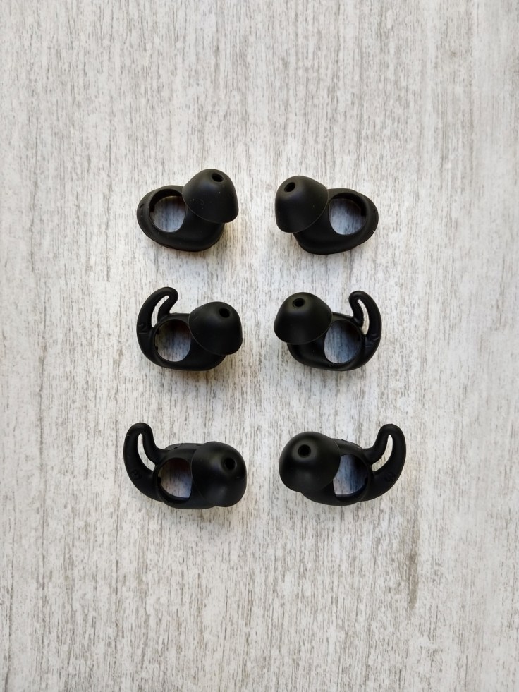 Eu ainda acho que as eartips da Jaybird não são passíveis de tantas críticas porque elas em último caso são de boa qualidade. Tem uma ótima textura, são bem macias e ao mesmo tempo são bem resistentes. Isso já é meio caminho andado pra não precisar se preocupar com essas ponteiras. A minha crítica maior é realmente a espessura do furo da eartip que – na minha opinião – acaba enviesando a sonoridade do fone.