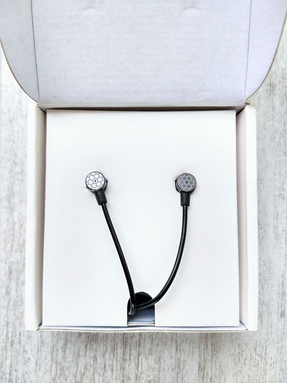 Ele possui as iniciais L e R (esquerdo e direito) logo ali onde faz a junção do cabo com os fones. Agora, eu confesso ficou meio difícil de distinguir qual lado é qual porque as letras são pequenas e estão na cor preta. Ficaria mais fácil se tivesse uma cor diferente ali. A dica é você colocar um pedacinho de fita crepe (aquela fita branca) em apenas um dos lados do cabo pra você identificar rapidamente qual é o direito e o esquerdo, assim você já pega o lado certo no automático. Pra quem adquiriu a versão com microfone, pode se basear também pelo lado que estão os controles, embora ainda ache mais prático colocar alguma fita com cor pra destacar.