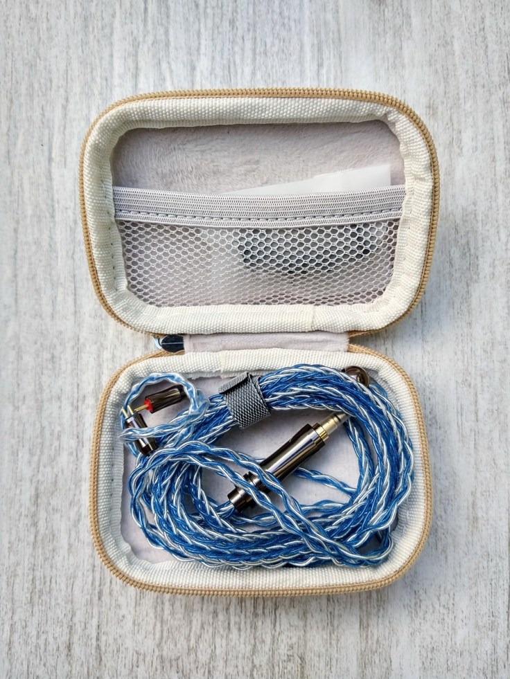 De acessórios inclusos, vem um Case (estojo) semirrígido forrado internamente com um tecido aveludado. Eu tenho preferência por Cases rígidos, acho que nessa faixa de preço os fones merecem ter Cases mais protetivos (subjetivo). E também vem incluso um adaptador 3.5mm (fêmea) para 6.35mm (macho). Produto também possui um guia informativo/manual em inglês e chinês.