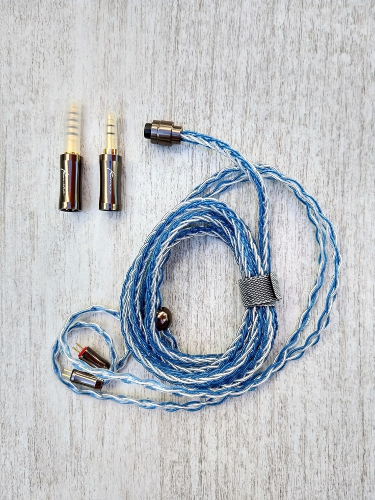 Cabo. Aqui temos um item bem interessante. O cabo do IDUN Golden é o Kinera Ace Modular, que é vendido separadamente pela empresa, a única diferença é que no cabo do IDUN Golden vem apenas dois plugues (3.5mm e 4.4mm), e o Ace, o kit vem completo com os três tipos de plugues (2.5mm, 3.5mm e 4.4mm).