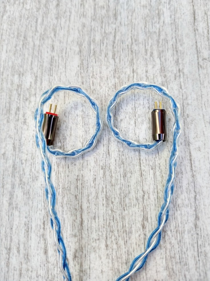 Conectores 2 Pin. O fone vem com conectores tipo 2 pinos (o inimigo do MMCX). Tenho preferência por esse tipo de conector pelo fato de que o earhook não fica rotacionando, mas se o MMCX também não rotacionar, pra mim é Ok. Aqui no IDUN Golden os conectores não tem indicação de lado (L e R), os fones também não apresentam essa indicação. A única coisa que diferencia os lados é uma pequena parte no conector com a cor vermelha e azul. Felizmente no manual do produto tem a explicação de qual lado encaixar. Mas é aquela coisa, se a pessoa for iniciante com esse tipo de produto, pode ficar um pouco perdida.