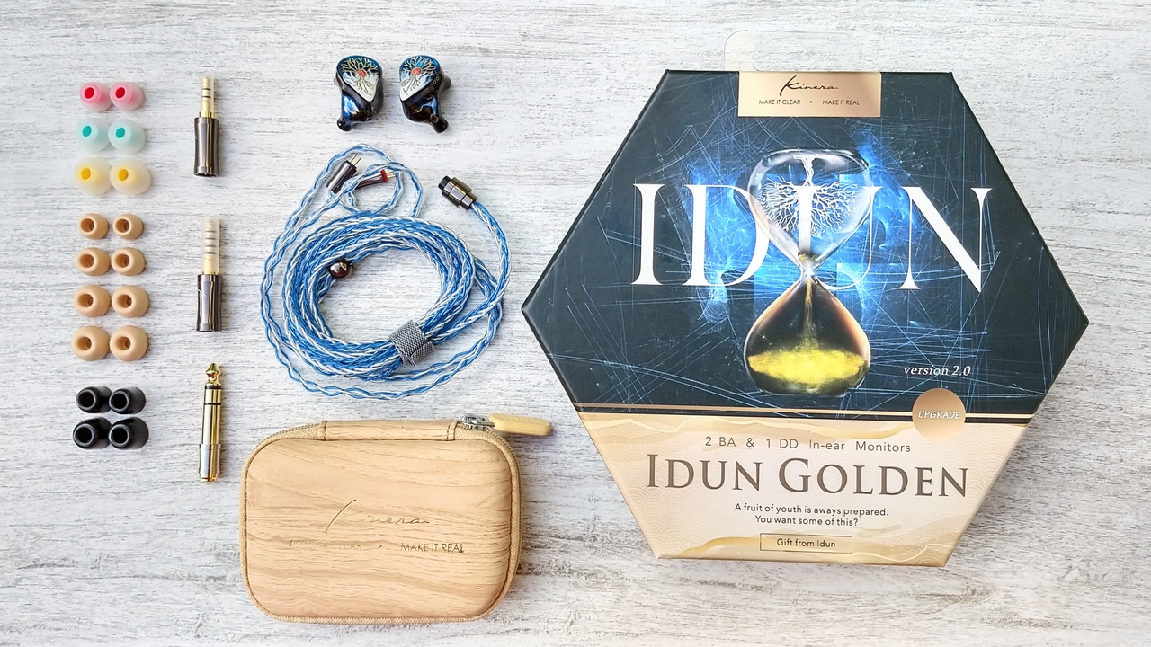 A Kinera tem utilizado alguns nomes de deuses e deusas da Mitologia Nórdica pra batizar seus fones. Aqui na ocasião, IDUN, é a deusa da juventude, responsável por proteger as maçãs que conferem a juventude. A imagem dourada sobre a Faceplate do fone representa a “yggdrasil”, árvore que liga os nove mundos (segundo a cosmologia nórdica), e o logotipo da Kinera seria a raiz da árvore.