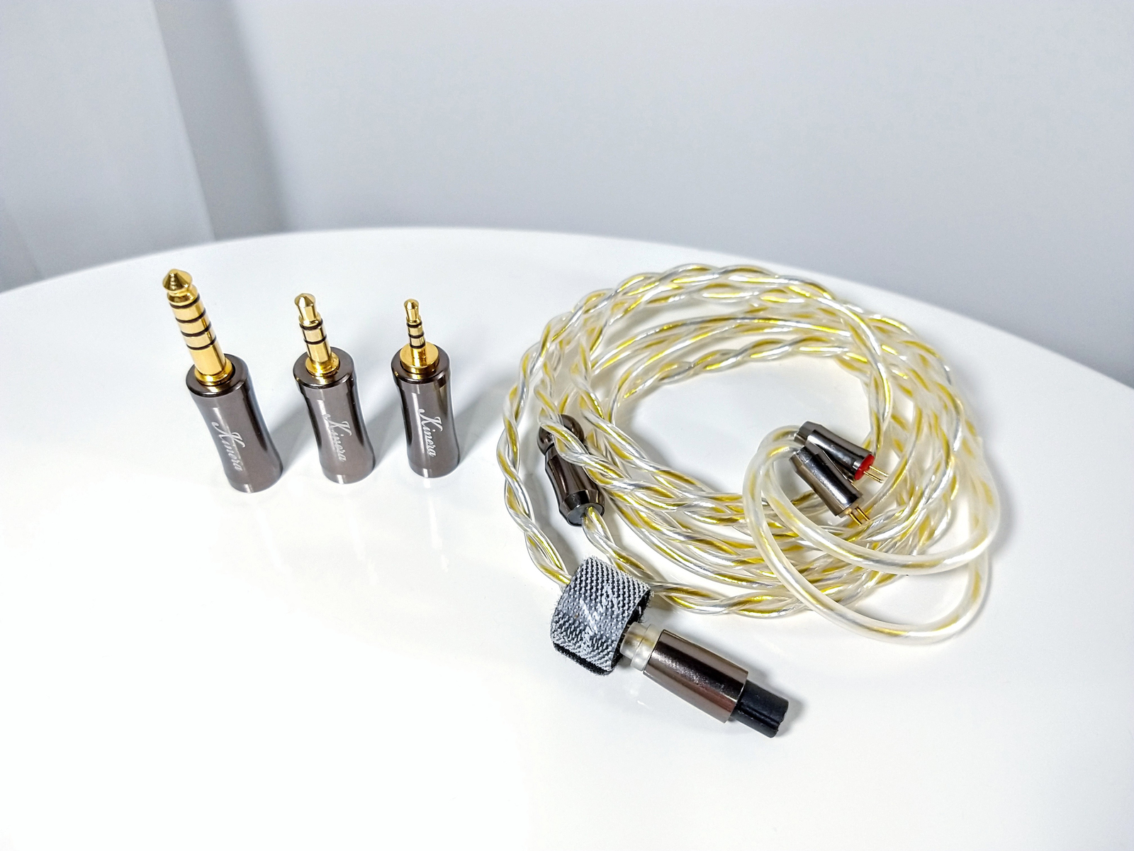 Cabo. Aqui temos um cabo modular com os plugues 2.5mm, 3.5mm, e 4.4mm, fazendo assim o fone ser capaz de rodar no sistema balanceado (2.5mm e 4.4mm). O cabo utiliza o mesmo sistema modular do Idun Golden que já testei. Na ocasião do Idun Golden, eu achei que o sistema não era muito legal porque era muito rígido para efetuar a troca, além dos plugues serem muito lisos, o que dificultava mais ainda na troca. Aqui no URD, essa questão já não apareceu, foi possível trocar todos os plugues muito facilmente e sem dor de cabeça. Provavelmente por o fone já ter um certo tempo uso, ele acabou ficando “amaciado” nesse quesito. Agora sobre as características do cabo: esteticamente o cabo poderia ser todo banhado a prata que pra mim ficaria mais combinando com o fone, mas de todo modo não ficou ruim o resultado, me agradei também. É um cabo bem leve, fácil de enrolar para guardar, não embaraça, e não apresenta microfonia. O cabo apenas apesentam algumas “memórias” (ondulações) em sua extensão, mas nada de absurdo. Ele vem com o “Chin Slider” (peça que regula a abertura dos cabos que vão para os falantes) e a peça realmente cumpre com o prometido, não desliza em momento algum.