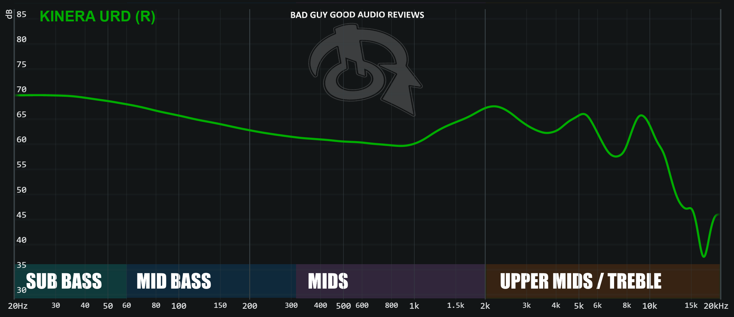 O quantitativo de graves do URD. Aqui eu entendi como um fone com graves moderados. De certo quando eu ouvi pela primeira vez – sem fazer as modificações na amplificação – eu entendi como de moderado para baixo – pro meu gosto – porém quando fiz as modificações, aí sim eu entendi como um grave que em momentos soou moderado e em outros soou de moderado pra cima. Que fique claro que não acho que esse seja um fone ideal para bassheads, o fator graves divertidos não é a pretensão do URD, só que assim, eu gosto de graves e pude me dar por satisfeito com a quantidade que encontrei aqui, aí vai da pessoa no momento querer uma apresentação mais fiel ou mais divertida. Em termos de sub-graves e médio-graves, o fone possui um leve destaque a mais nos sub-graves, ficando os médio-graves um pouquinho mais baixos, mas ainda assim o fone tem médio-graves presentes, a apresentação não perde o equilíbrio. Para exemplificar, acredito que o Truthear Hexa tem ainda mais sub-graves e menos médio-graves do que o URD, então pra vocês verem que essa diferença de uma região para outra no URD é algo bem pequeno mesmo. O fone não apresenta decaimento (roll-off), a extensão é boa.