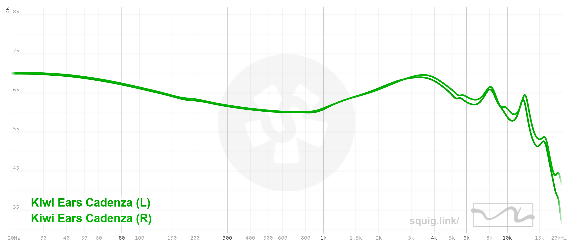 I understood the sound of the Kiwi Ears Cadenza as one more earphone influenced by the Harman Target (Harman International compensation curve). It’s true that each company makes its own modification of this curve, but in the general context, the curve serves as a parameter to describe that the sound of the earphones is something like this: emphasized bass, recessed mids, slightly more enhanced upper-mids, and more relaxed treble.