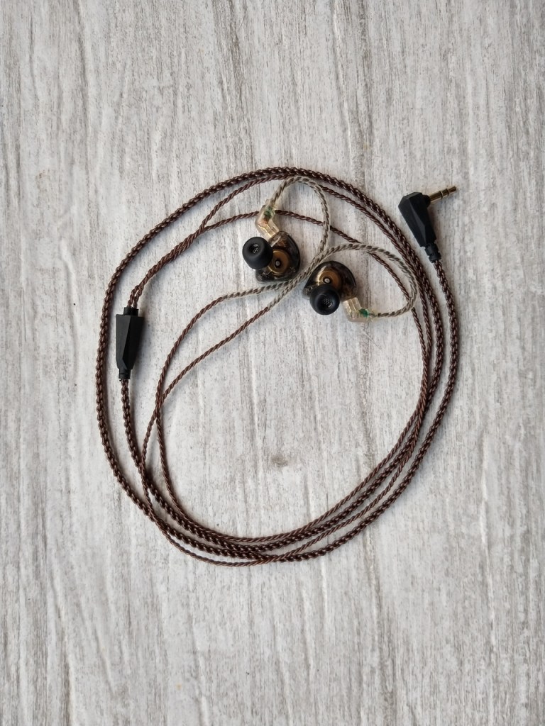 Cabo. Esse cabo é bem simples mas dá pra usar ele sem ficar na paranoia de mudar, entretanto, fiz questão de deixar presente aí nas fotos um ponto negativo que foi a oxidação na parte dos conectores QDC, como tem um revestimento transparente, fica visível o zinabre na parte citada. Não é muito grande a parte oxidada mas isso já justifica um possível upgrade, caso você ache necessário.
