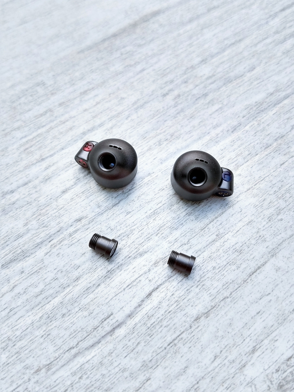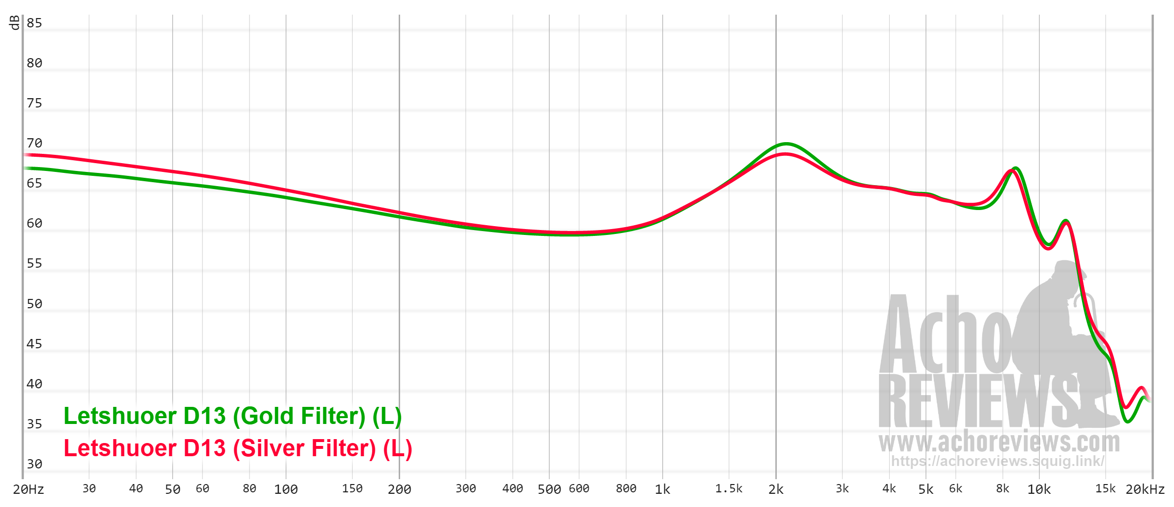 Filtros. Então, na parte sonora existe sim uma pequena alteração no som com a mudança dos filtros. Na minha opinião, os filtros dourados acrescentaram um pequeno destaque na região dos médios (médio-agudos) e nos agudos (ainda que nas FRs a região dos agudos não mostrem nenhuma modificação, porém eu achei que sim nas minhas audições). Já com os filtros prateados o som faz o processo inverso ao dos filtros dourados, eles diminuem o que foi destacado com o filtro anterior. A diferença é muito pouca, ainda acho que a troca das eartips geram mais diferença no som do que a troca pelos filtros.