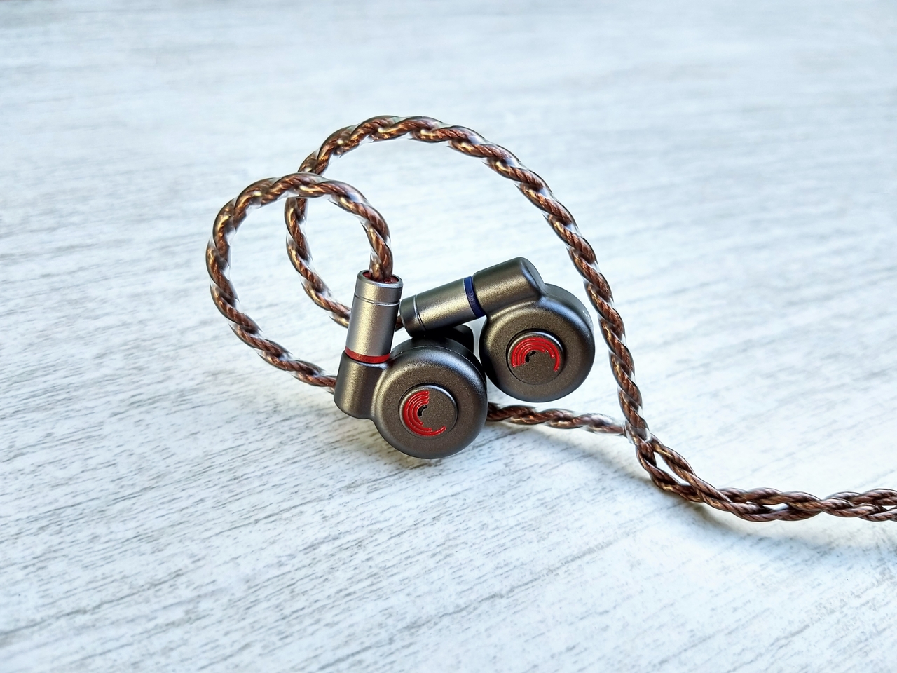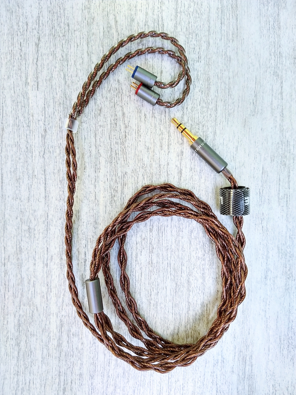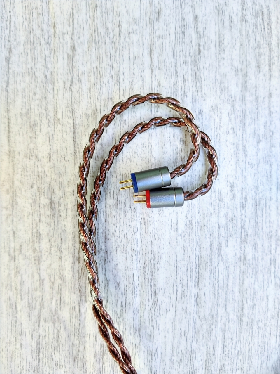 Cabo. A empresa optou por colocar um cabo de cobre de 4 tranças com uma cor puxada pro marrom. A princípio é um cabo que não chama muito a atenção, mas eu posso garantir a vocês que ele é muito bem feito e funcional. Em termos estéticos ele lembra em parte o cabo do Tin HiFi P1 MAX, porém esse do D13 ainda é mais escuro um pouco. Eu tenho um pouco mais de preferência por cabos prateados, mas eu confesso que não me importei com isso quando comecei a testar esse. O cabo do D13 é realmente um cabo muito bom, basicamente eu só vi pontos positivos nele. Ele é até melhor que o cabo do S12 – ainda que eu ache o cabo do S12 mais bonito – mas o cabo do D13 é mais leve que o cabo do S12, esse detalhe foi uma das poucas críticas que eu pude fazer ao S12, o cabo dele meio que gera um certo desconforto em longas audições (na minha opinião). Achei o cabo do D13 fácil de enrolar pra guardar, ele fica do jeitinho certo após enrolar, ele é ótimo no manuseio, também não pega memória, e tem pouca microfonia, o trivial.