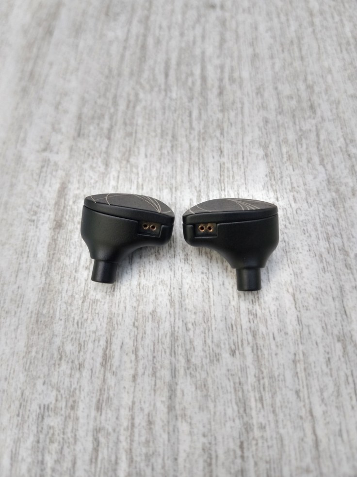 Conectores 2 Pin (2 pinos). O Aria vem com conectores do tipo 2 pinos, e eu tenho mais preferência por esse tipo de conector. Basicamente os conectores do Aria são bem simples, nenhum requinte ou sofisticação, mas o melhor, são funcionais. Pra tirar e colocar são bem simples, sem complicação. Ambos os lados possuem a marcação pra saber qual lado encaixar (L=esquerdo, R=direito), embora nos fones não possuem a indicação de lado, e aí eu acho que a Moondrop passou batido nesse detalhe. Pra mim que já tenho um pouco mais de vivência com esse tipo de fone, já sei qual lado que cada um conector deve encaixar, mas pra quem tá pegando um fone nesse estilo pela primeira vez, possa ser que fique confuso.