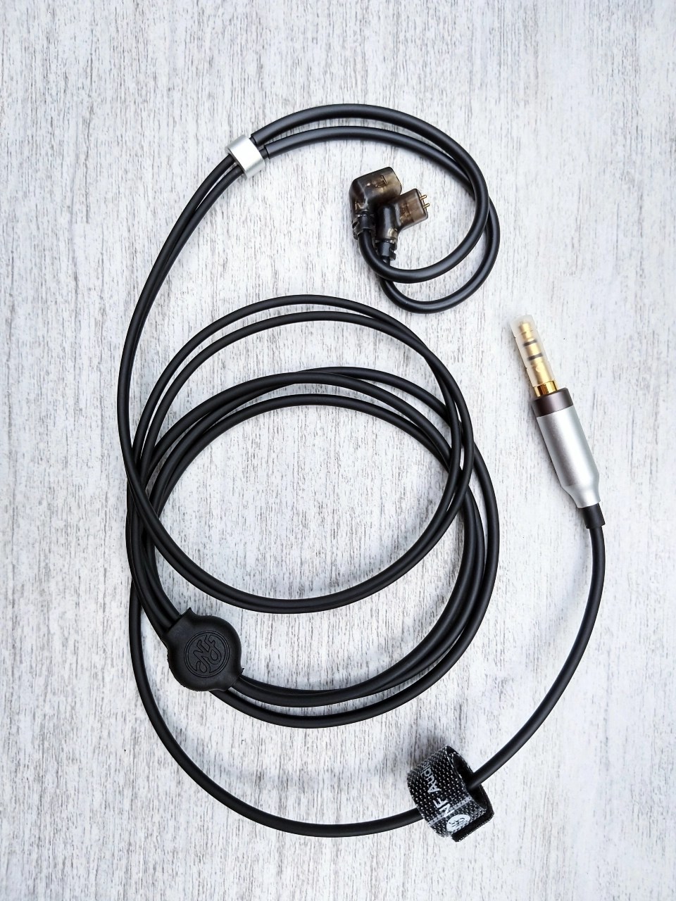O cabo do NF NA3 tem alguns pontos positivos e alguns pontos não tão positivos. O cabo é revestido com um material emborrachado mas é um material que traz uma textura macia ao toque, ele também é leve e fácil de guardar, não embaraça… resumindo, é um cabo simples e funcional. Por outro lado ele não tem nenhum requinte, parece o cabo do KBEAR Little Q (ainda que o do NA3 seja melhor). Outra questão é que ele pega memória, tipo, ele fica enviesado no formato que você guarda ele, ou seja, se você enrola ele na mão, ele vai ficar como se fossem círculos. Não é algo muito drástico não, ele consegue voltar ao formato normal. Ele também confere uma microfonia acima da média, se você tá escutando música ele até que diminui, mas assim que a música para, você consegue captar muito ruído dele encostando nas coisa (na mesa, na roupa, ou até na mão).