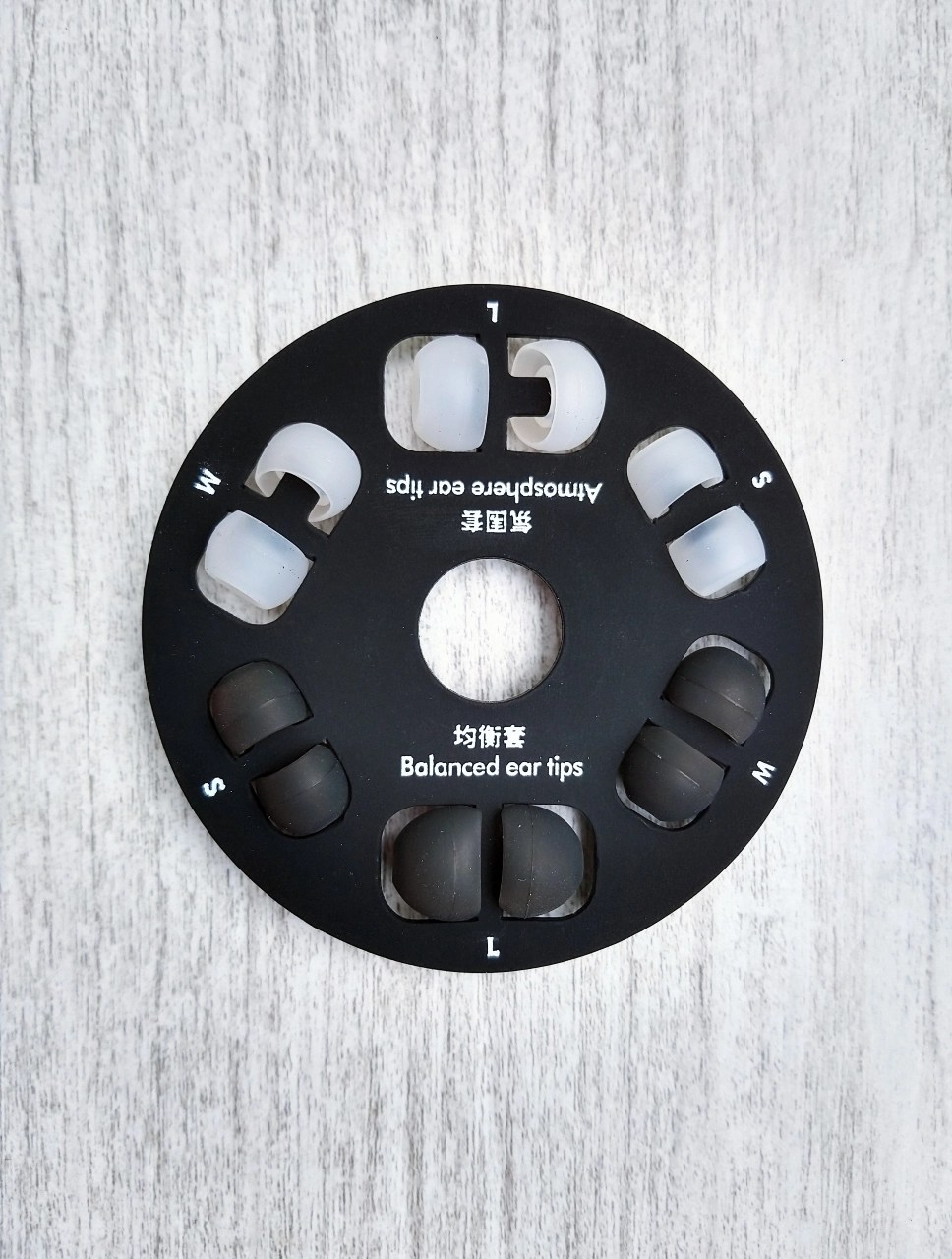 As “Atmosphere” são em estilo “wide bore” (bocal aberto) , já as “Balanced” tem o furo mais comum. Como já é sabido, eu não tenho muito apreço por eartips wide bore, então, dei prioridade a fazer a análise do fone com as “Balanced”, no tamanho M.
