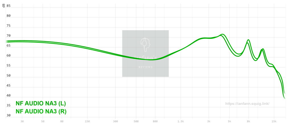 A sonoridade do NF Audio NA3 Essentials eu considero como algo entre um V-shape e um U-shape. Esse fone realmente é meio difícil de definir um padrão único de sonoridade. Ele tem graves que pra mim são moderados, médios mais “pra frente”, e agudos também moderados. Ele não é um fone warm (quente), nem bright (frio/brilhante), seria um meio termo. O principal destaque desse fone é a região do “pinna gain” (médio-agudos). O NA3 é um fone que tem um som que se afasta da proposta do “divertido”, do energético, então ele procura ser um fone mais “correto” sem coloração de graves e agudos.
