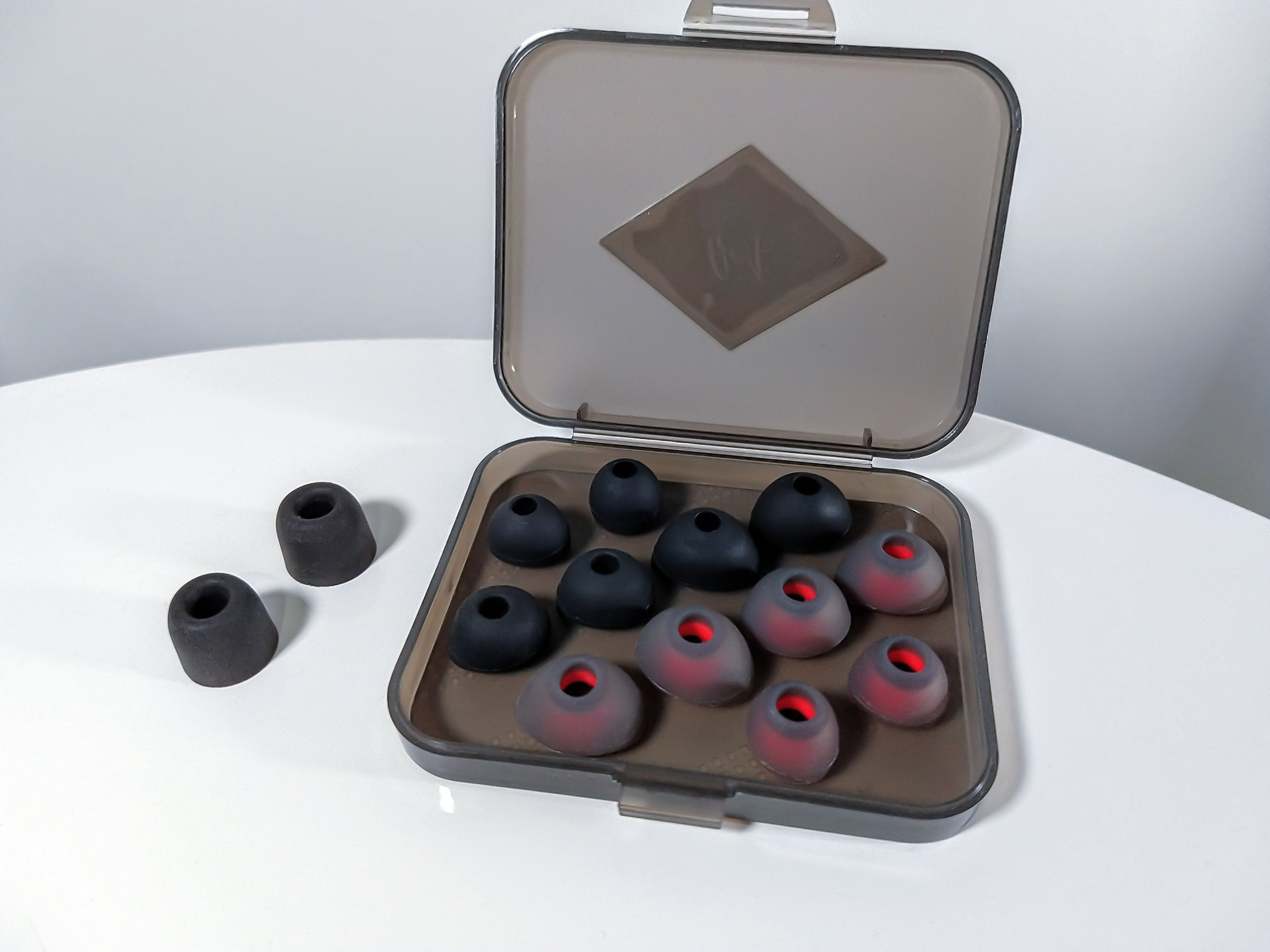 Eartips. Let’s start with the Margarita eartips. Here came 2 types of silicone eartips (sizes S/M/L) and 1 type of foamtips (foam)(one size). As you can see the eartips in the photos, I thought the kit was very simple, mainly because the IEM costs US$549 dollars, so it’s not an entry-level IEM, but in my opinion it came with “entry-level” eartips. Kinera/QoA itself launched the Kinera Hodur costing $299 dollars and the IEM comes with a complete package of Final E eartips, so it would be ideal for an IEM costing almost twice the Hodur to come with a more elaborate kit. Anyway, even though the eartips here are nothing special, I was able to put on the gray & red ones and think they were good for evaluating the IEM.