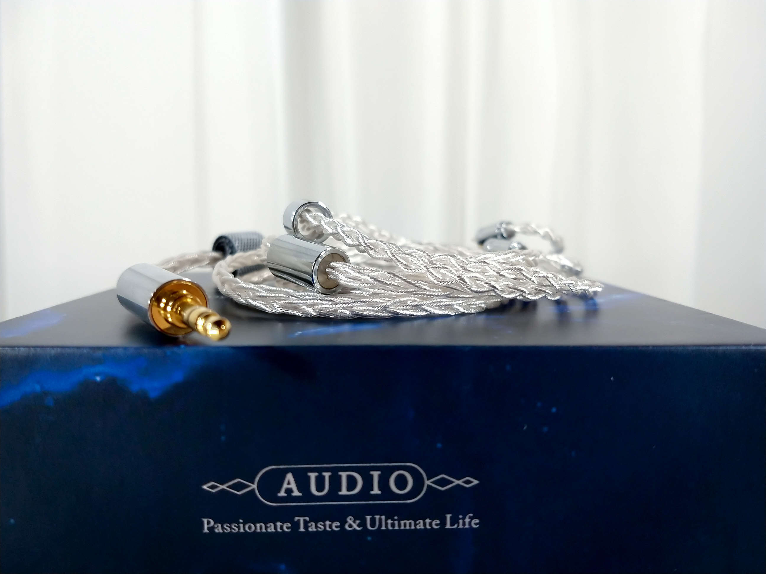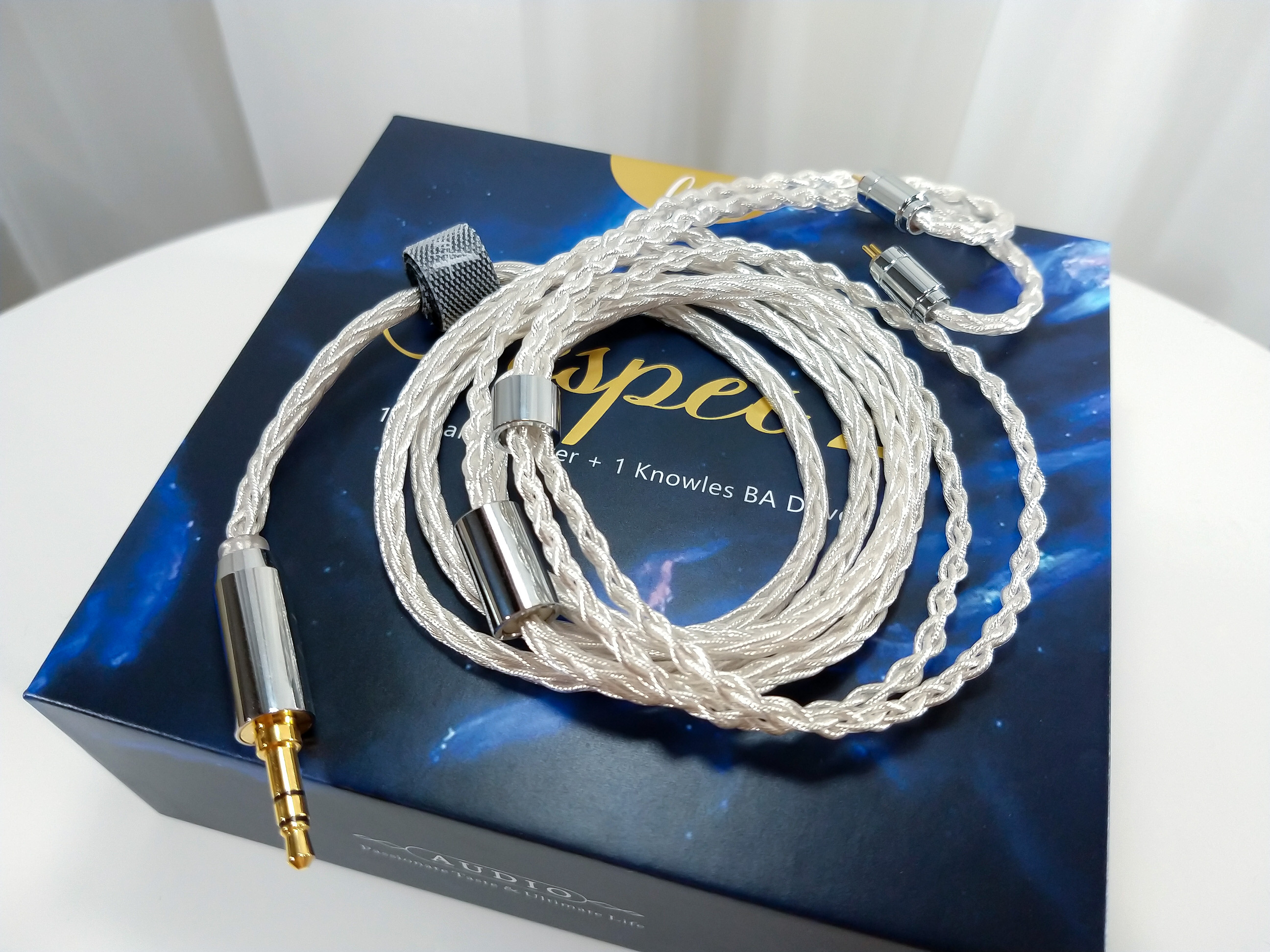 Cable. A part that is undoubtedly a strong point of the product… this cable is simply very good, a masterpiece of cables, starting with the beauty, and then the physical and practical thing. In terms of aesthetics, I was really impressed, everything about it is beautiful, from the braiding, the pieces, to the silver color (almost white), everything was very well chosen. The good thing is that it’s not just beauty, it also has good usability: it doesn’t take ‘memories’ (ripples), it doesn’t generate microphony, it doesn’t tangle easily, it’s easy to roll up to store. I consider this cable to be light… now, are there lighter cables? Certainly yes, but I can guarantee that this one isn’t heavy, it doesn’t cause discomfort, something that for example I thought happened with the Letshuoer S12 cable, over time it added a certain “weight” to the ear (at least for me). If we research for a cable with this quality here, I bet the price will be in the $50 usd range or more (the Vesper 2 costs $79 usd). So, I only saw benefits in this accessory. The chin slider may be the only Achilles heel of this cable, because the piece isn’t that effective, it slides along the cable. Now, this is a small detail, I don’t even care about this piece myself, but for those who use it, be warned.