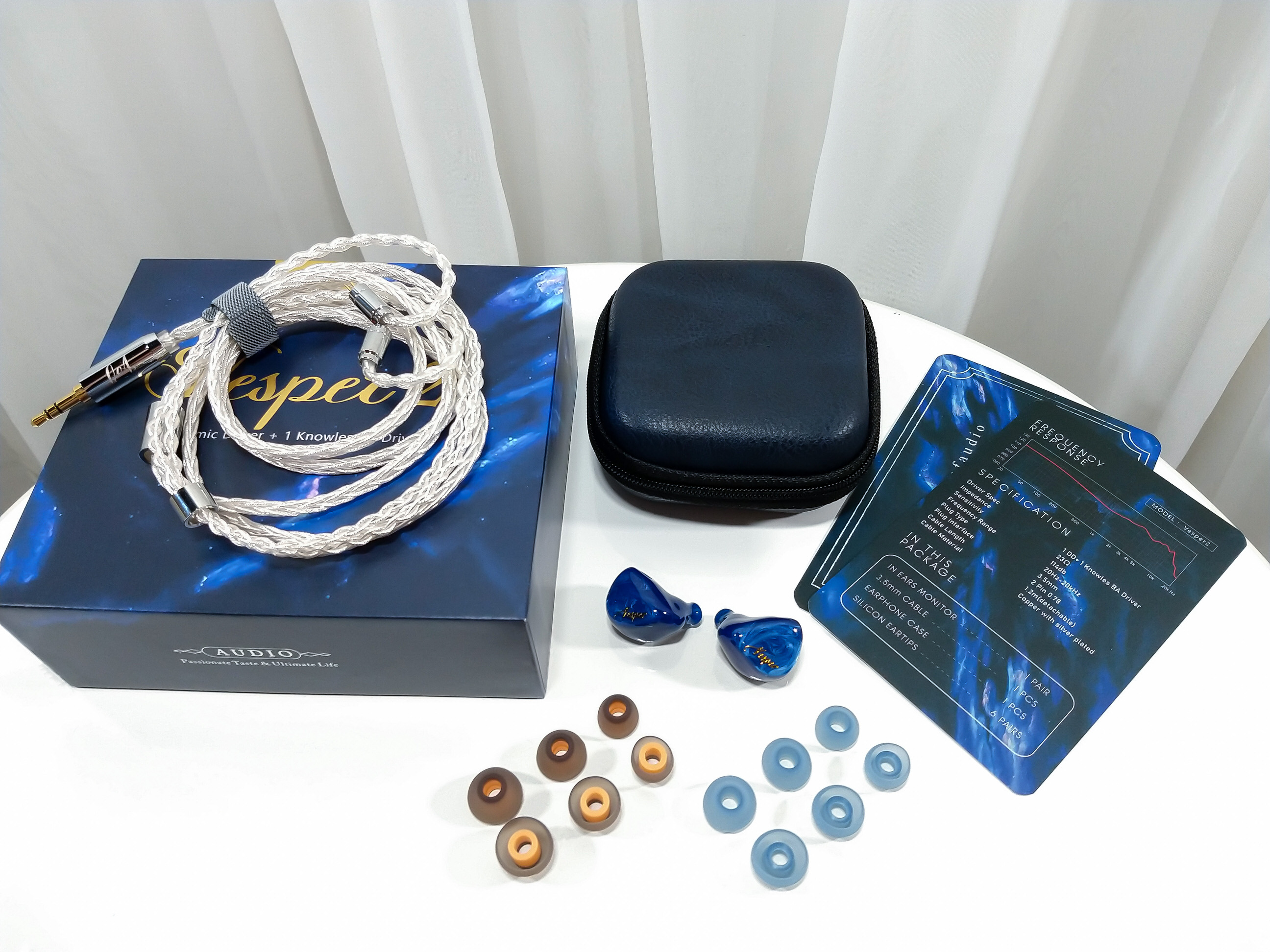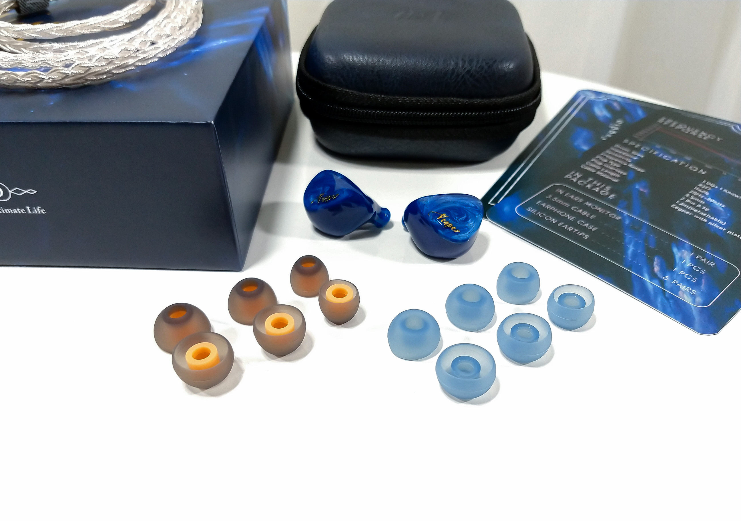 Accessories. Of included accessories, Vesper 2 comes only with a semi-rigid case covered in synthetic leather and zip closure. By the way, the case is great, fits the IEM very well without tightness or slackness, has space to store some eartips or an entry level dongle.