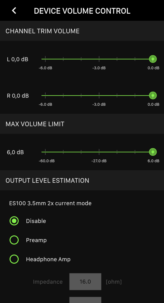 O produto sempre tem dois controles independentes de volume, o analógico direto do ES100 MK2, e o do dispositivo que você esteja usando (smartphone ou computador). Por exemplo, você pode chegar no máximo aumentando em um dispositivo e ainda ter uma margem de volume a ser aumentada no outro, aí é a pessoa que vai escolher como preferir por onde fazer o controle do volume. No caso o Android que uso, só possibilita um ajuste de apenas 15 níveis, e já pelo ES100 MK2 são mais de 130 níveis (deu até um pouco mais mas eu arredondei pra esse número), é 0.5dB por clique. Talvez seja interessante deixar no máximo do dispositivo e fazer um controle único direto pelo ES100 MK2.