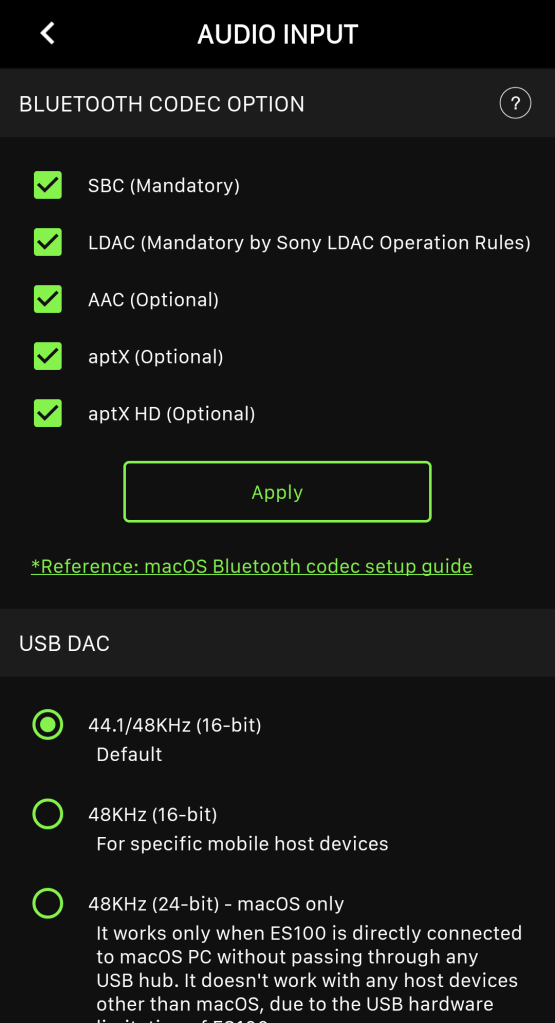 - Codecs: LDAC, aptX-HD, aptX, SBC, AAC