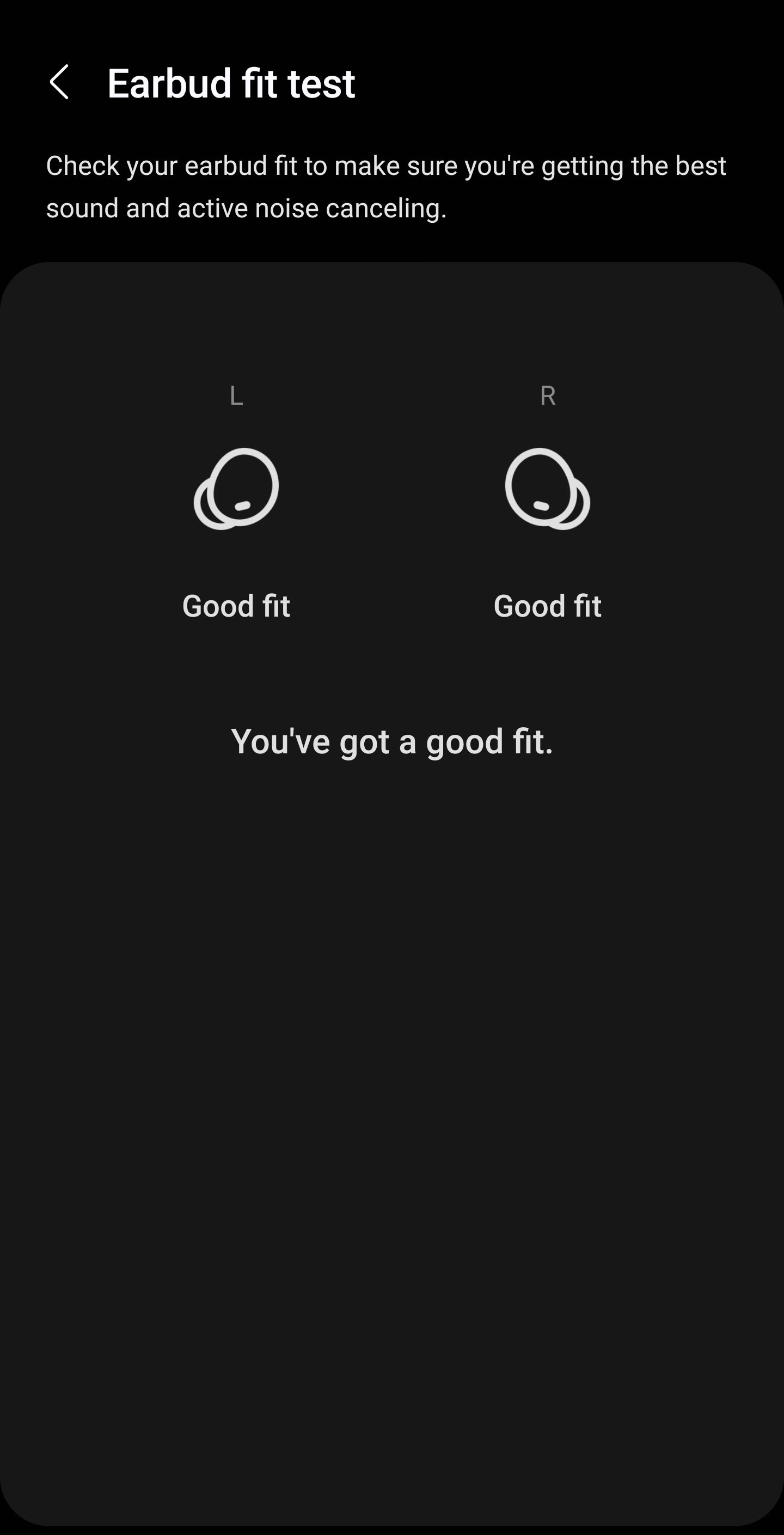 Interesting is that Samsung provides a fit test through the “Galaxy Weareble” app (prints along with the App). In my opinion, it is just an aid, because the final fit has to be evaluated by the user. I put the left side in the right ear, and the right in the left ear, the app said I had “a good fit” (!).