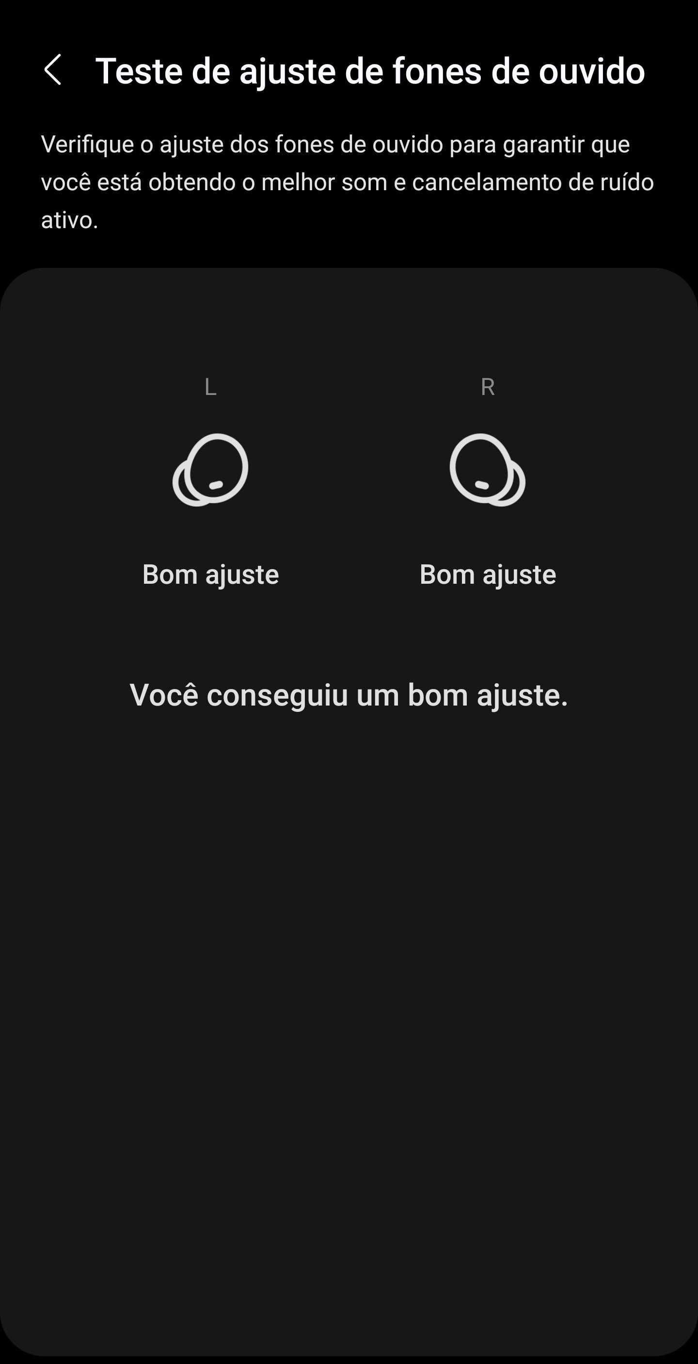 Interessante é que a Samsung disponibiliza um teste de encaixe pelo aplicativo “Galaxy Weareble” (prints junto com os do App). Na minha opinião, é apenas um auxílio, porque o encaixe final mesmo tem que ser avaliado pelo usuário. Eu coloquei o lado esquerdo no ouvido direito, e o direito no ouvido esquerdo, o aplicativo disse que eu tive “um bom ajuste” (!).