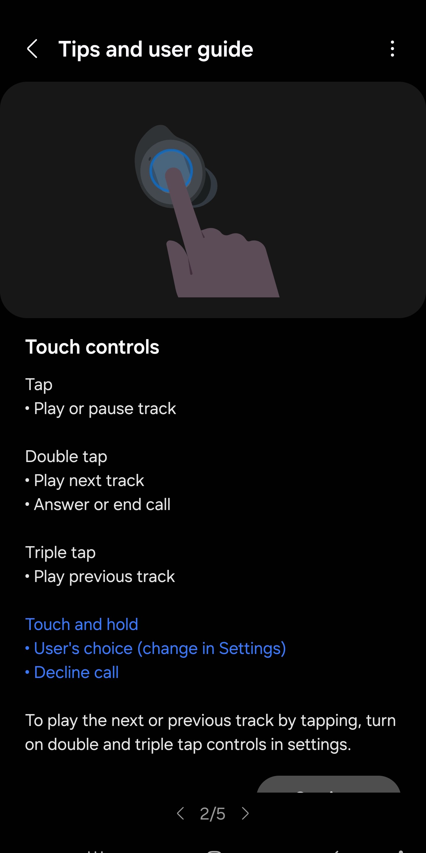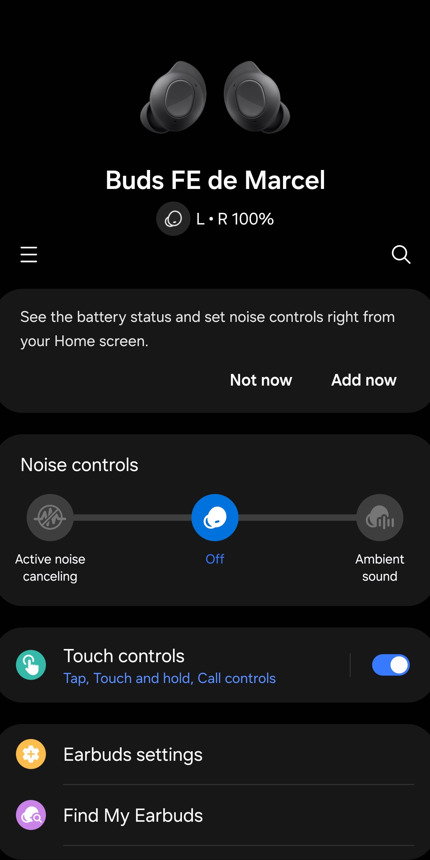 Through the app, you can customize the touch controls for the Buds FE, such as Play/Pause, Volume Up or Down, ANC (Active Noise Cancellation), and Ambient Sound mode, among others. More details can be found in the User Manual at the end of this section.