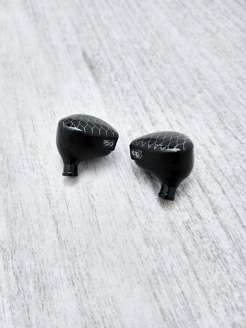 Conectores 2 pinos. O P1 MAX vem com os conectores do tipo 2 pinos (2 pin), e pra mim é o melhor tipo mesmo. Os conectores vem com a indicação pela cor vermelho (lado direito) e azul (lado esquerdo). Já os fones tem as letras pintadas “L” e “R” (esquerdo e direito respectivamente).