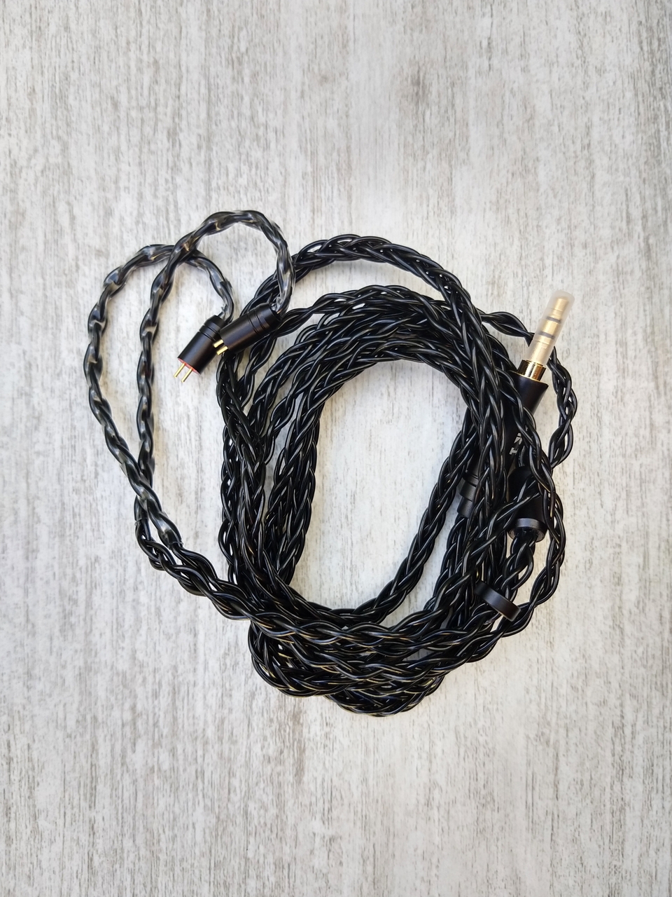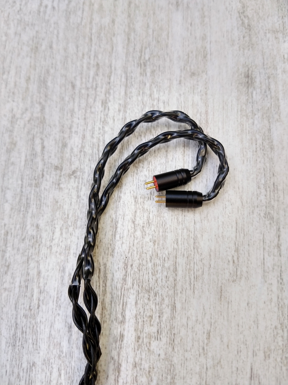 Cabo. Uma palavra pra resumir esse cabo seria: funcional. Ele é bem leve, bem maleável, fácil de guardar, não embaraça muito (só mais na região dos earhooks que engancha um pouco, o que é normal dos cabos com earhook). Ele pega um pouco de memória em sua extensão, mas é coisa bem discreta, não afeta a saúde do cabo. Em questão de microfonia, também é muito pouco, coisa que passa despercebido. Possui redutor de tensão (strain relief) na parte do plugue 3.5mm.